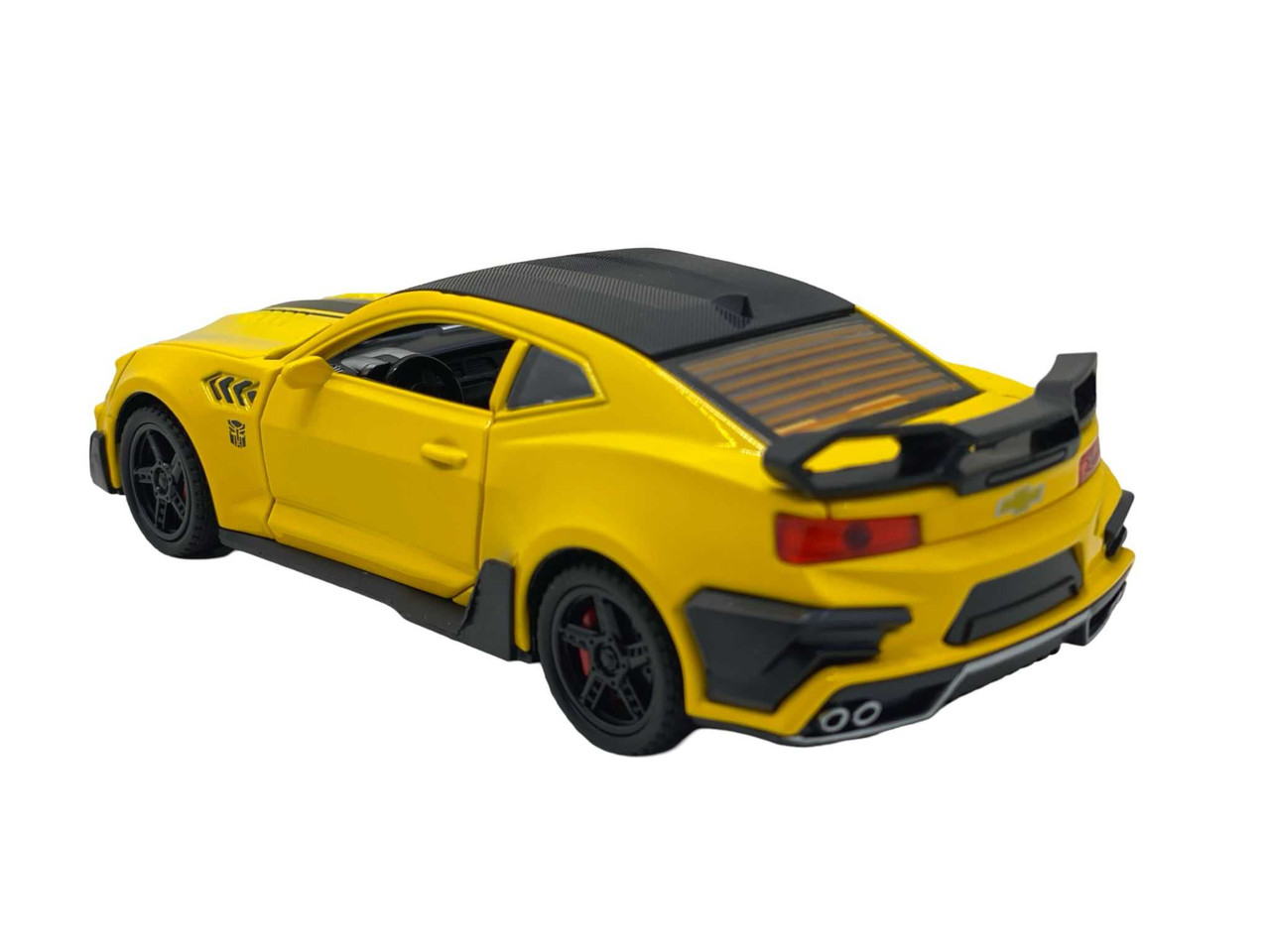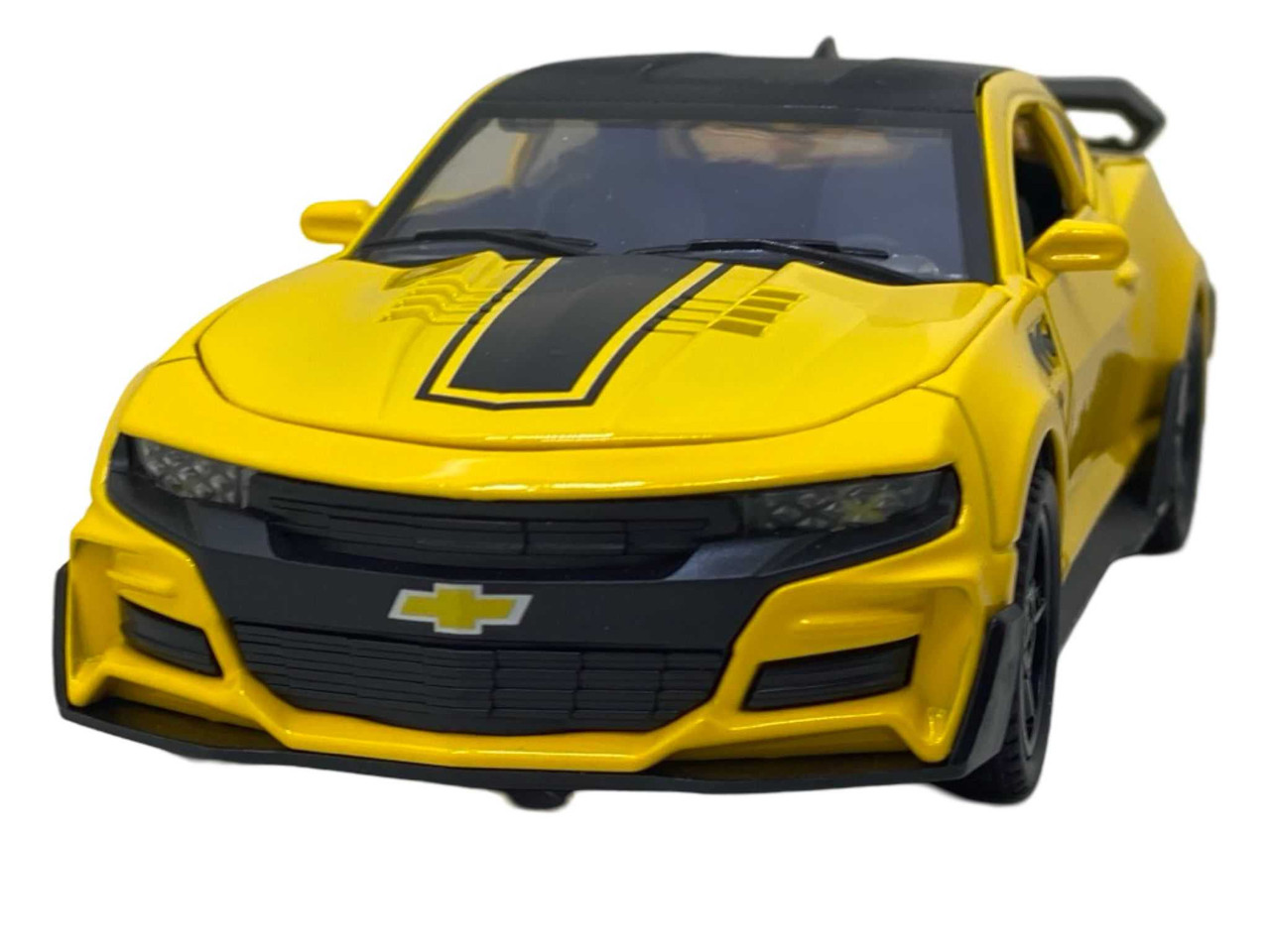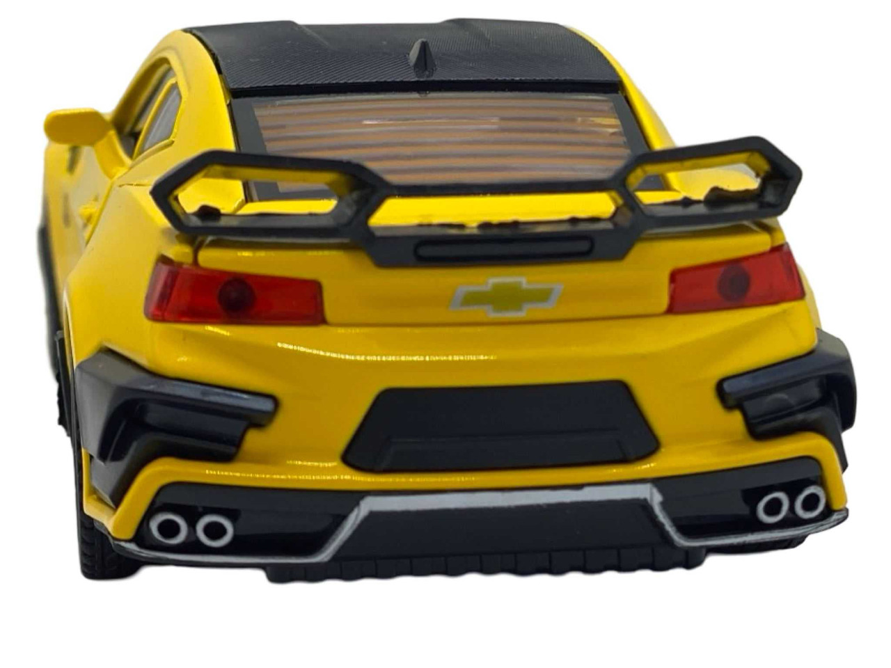 Macheta Metalica replica Chevrolet Camaro, Scara 1:32, cu Efecte Luminoase si Sonore, Deschide Usi, Capota, Portbagaj, Culoare Galben