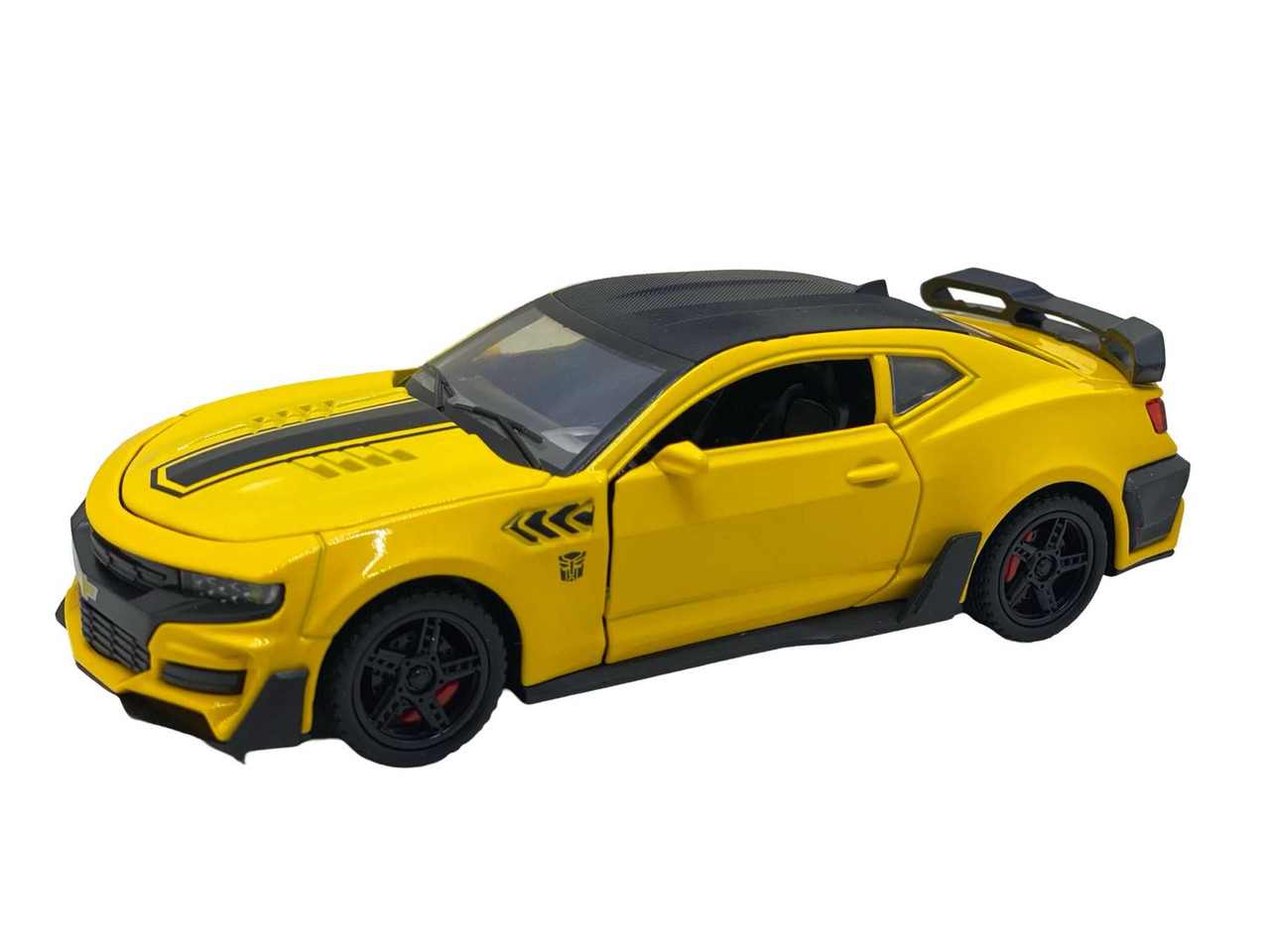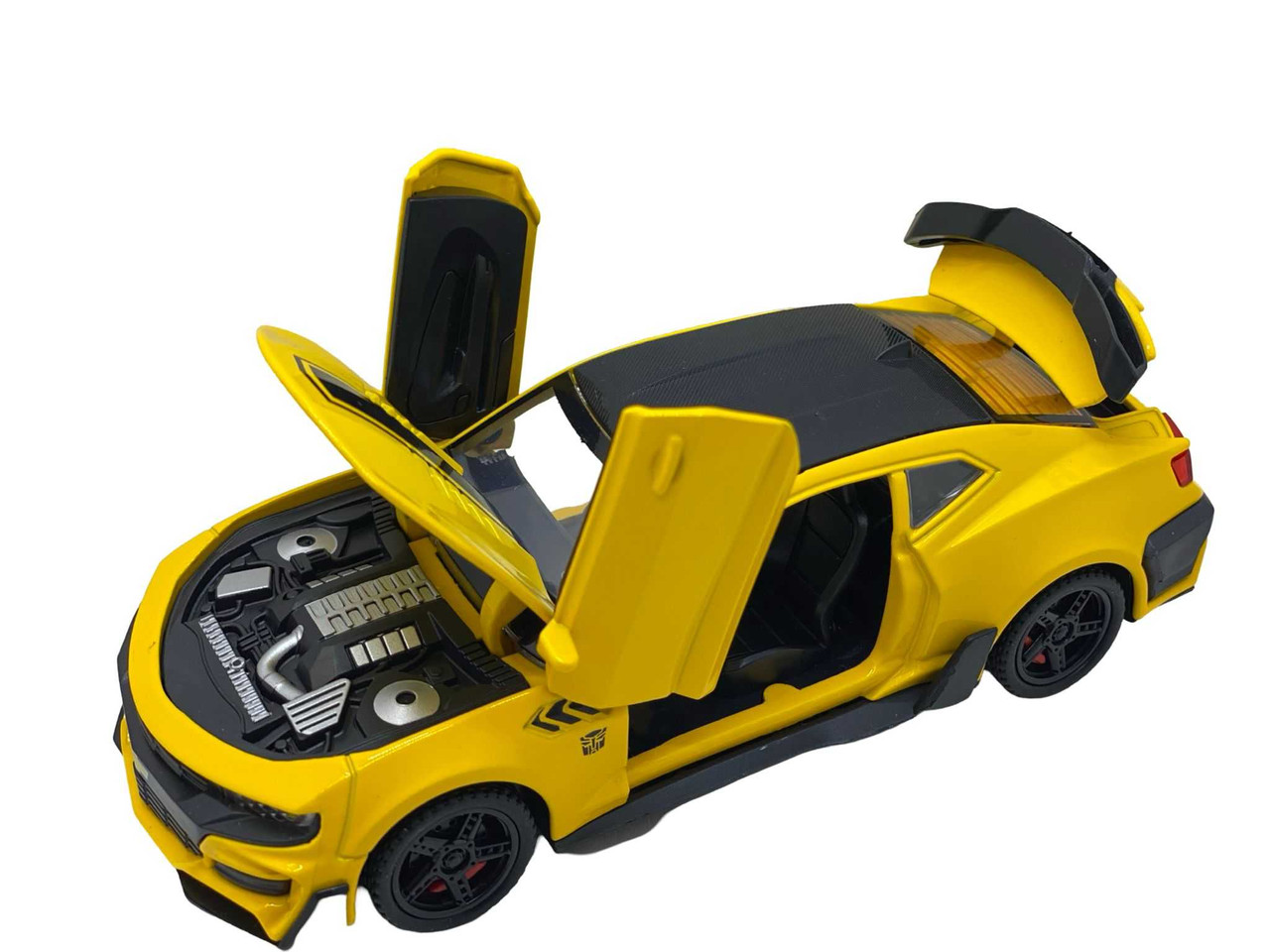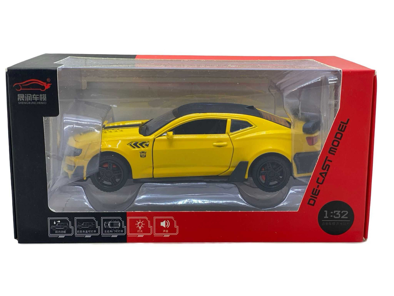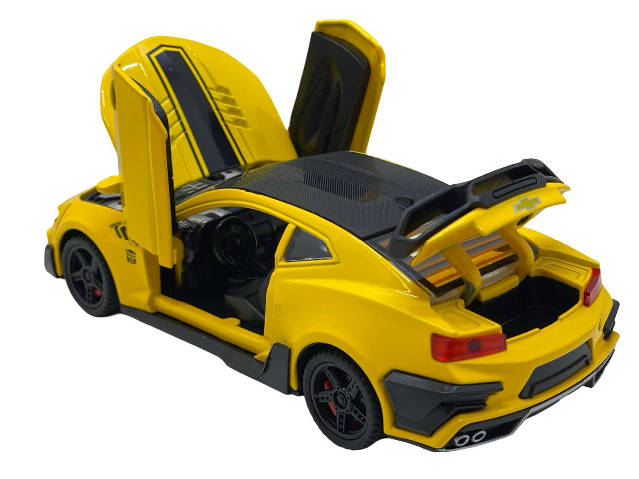 Macheta Metalica replica Chevrolet Camaro, Scara 1:32, cu Efecte Luminoase si Sonore, Deschide Usi, Capota, Portbagaj, Culoare Galben