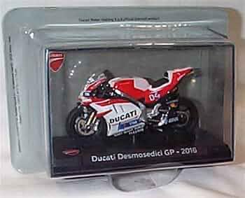 Aceasta macheta reproduce motocicleta de competitie Ducati Desmosedici GP din sezonul 2016, un model emblematic din MotoGP, cunoscut pentru performanta extrema si tehnologia avansata.