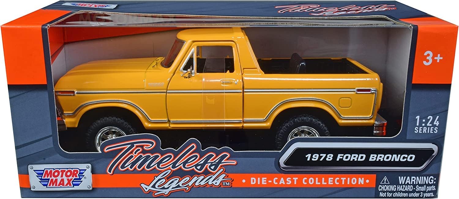 Macheta Motor Max Ford Bronco (open Top) 1978 1:24 galben replica metal die-cast