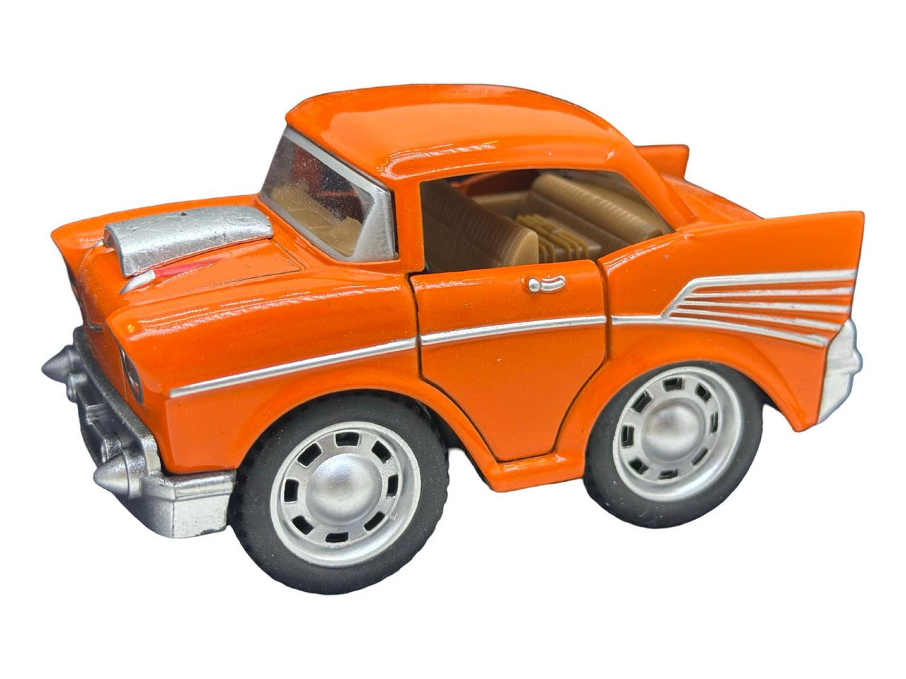 Macheta metalica muscle car albastru cu flacari rosii si motor iesit pe capota, in stil caricatural. Design compact si agresiv, roti functionale si caroserie din aliaj. Model MC Five ideal pentru copii peste 3 ani sau colectionari care apreciaza stilul exagerat si amuzant. Perfecta pentru joaca dinamica sau expunere in colectii tematice.