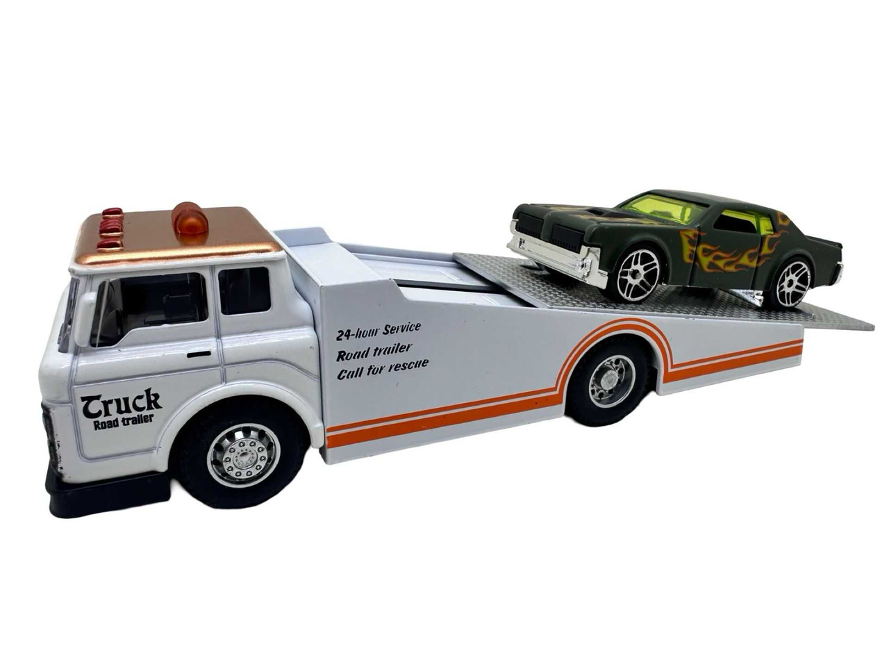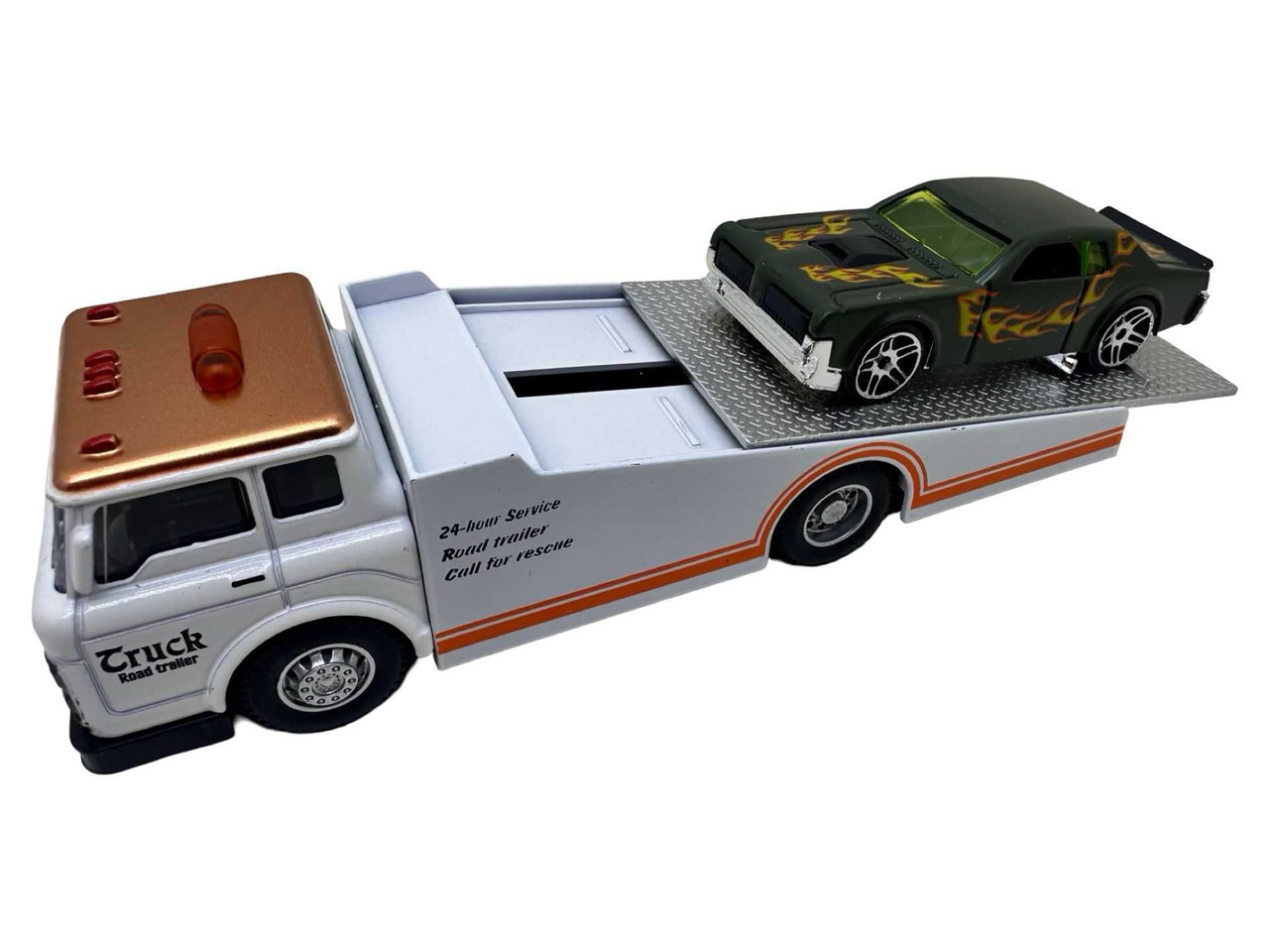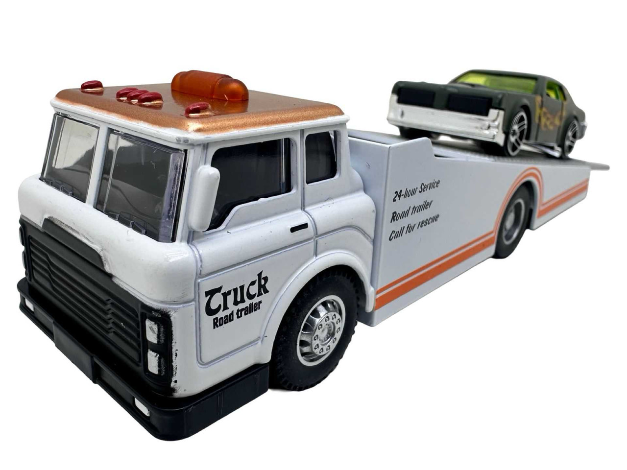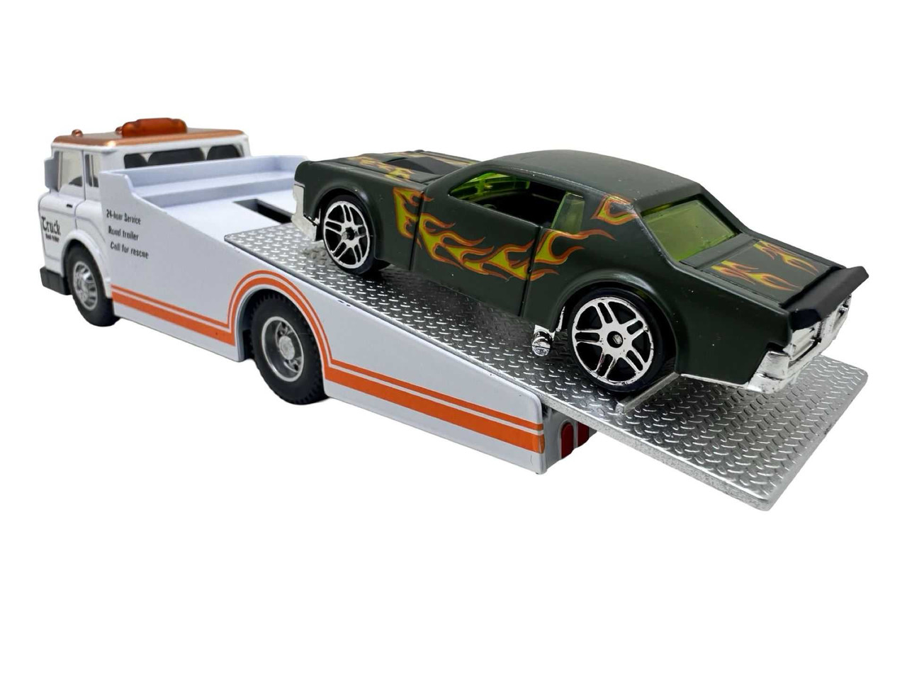 Macheta Platforma Camion Tractare Masina Sport 16cm pe alb