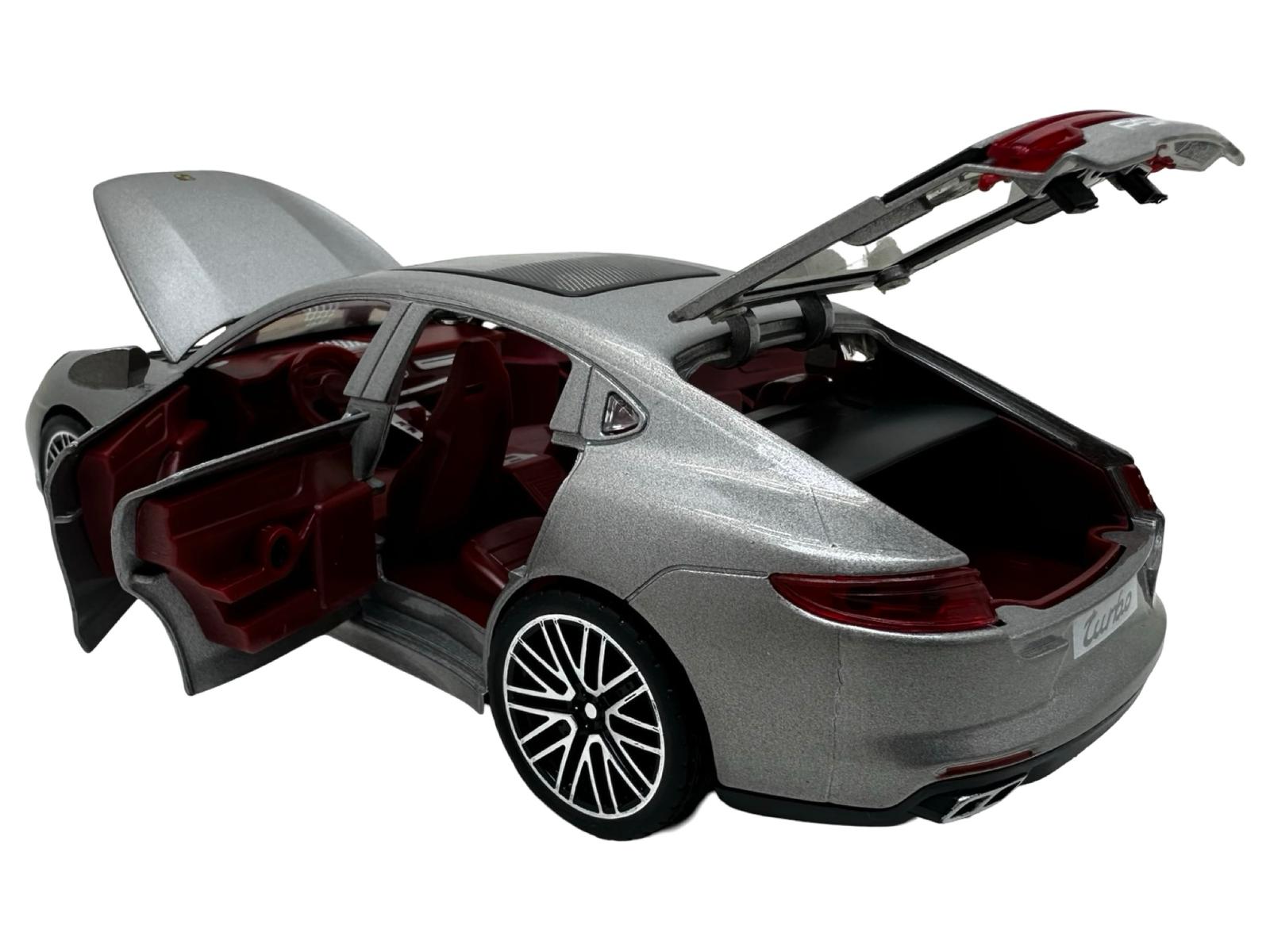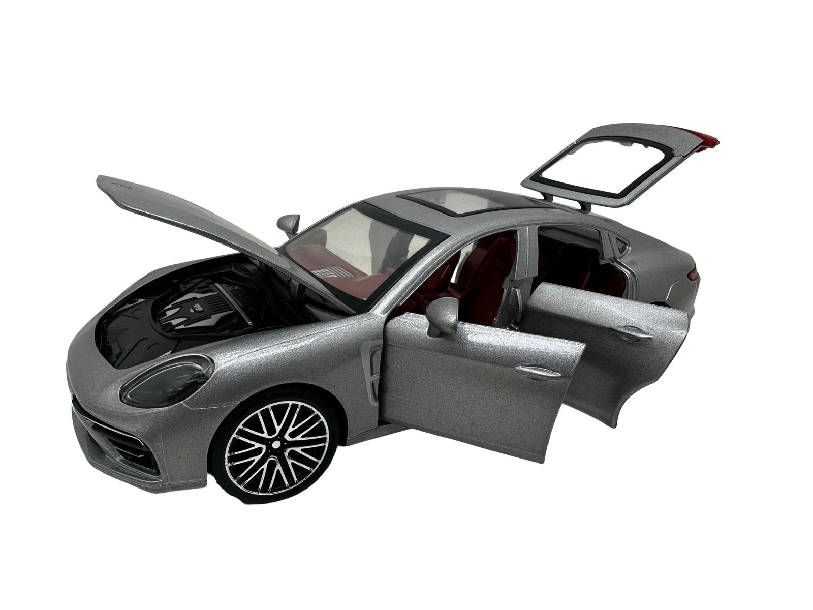Macheta Porsche Panamera gri 1/24 sunete lumini deschide usile si capotele