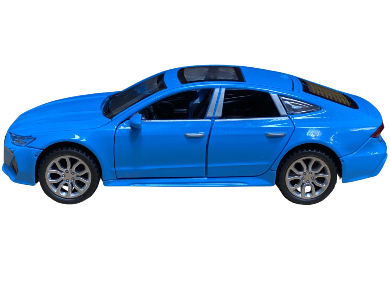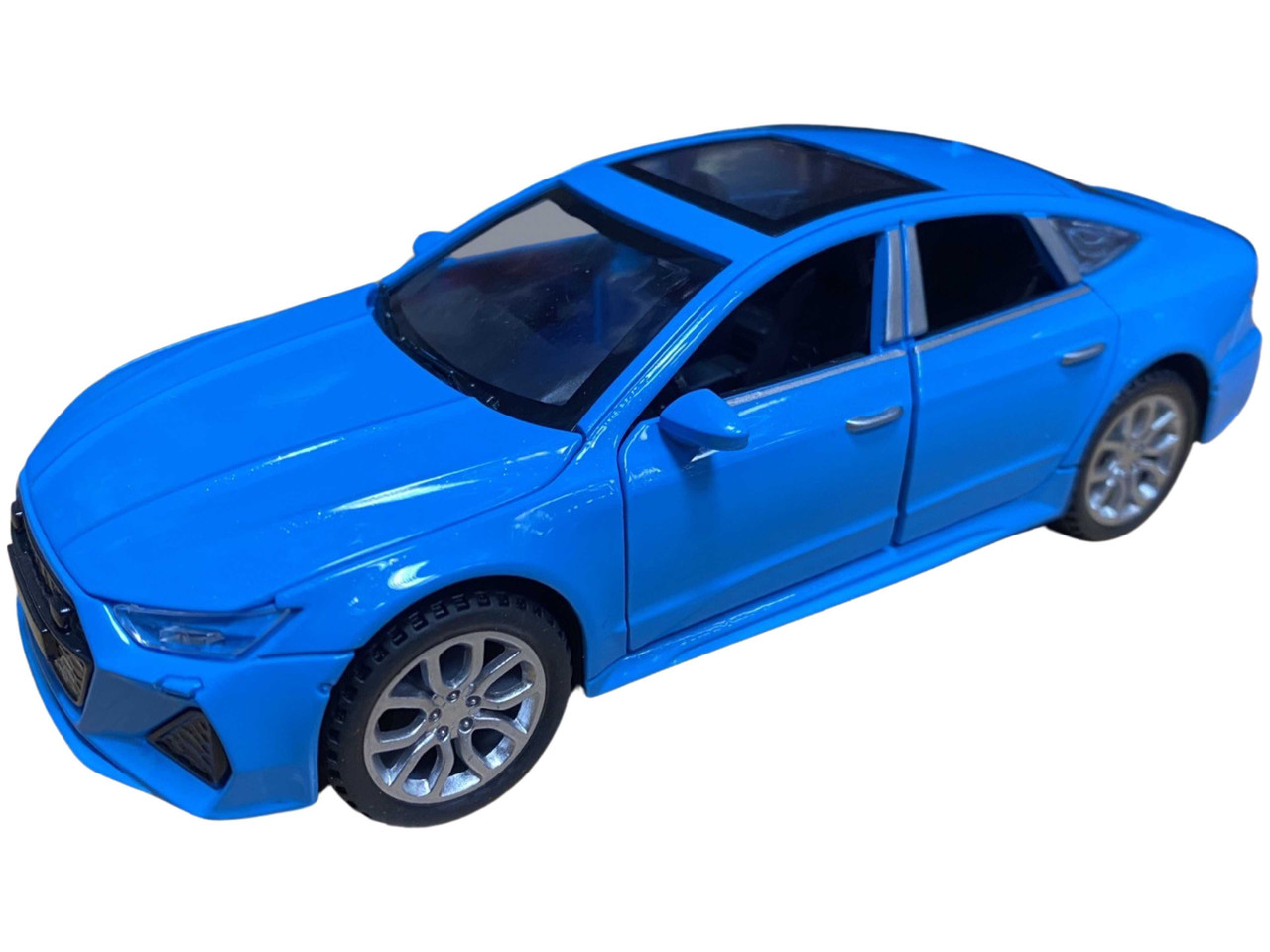 Macheta replica metal Audi A7 albastru deschide 4 usi, portbagaj si capota, lumini si sunete