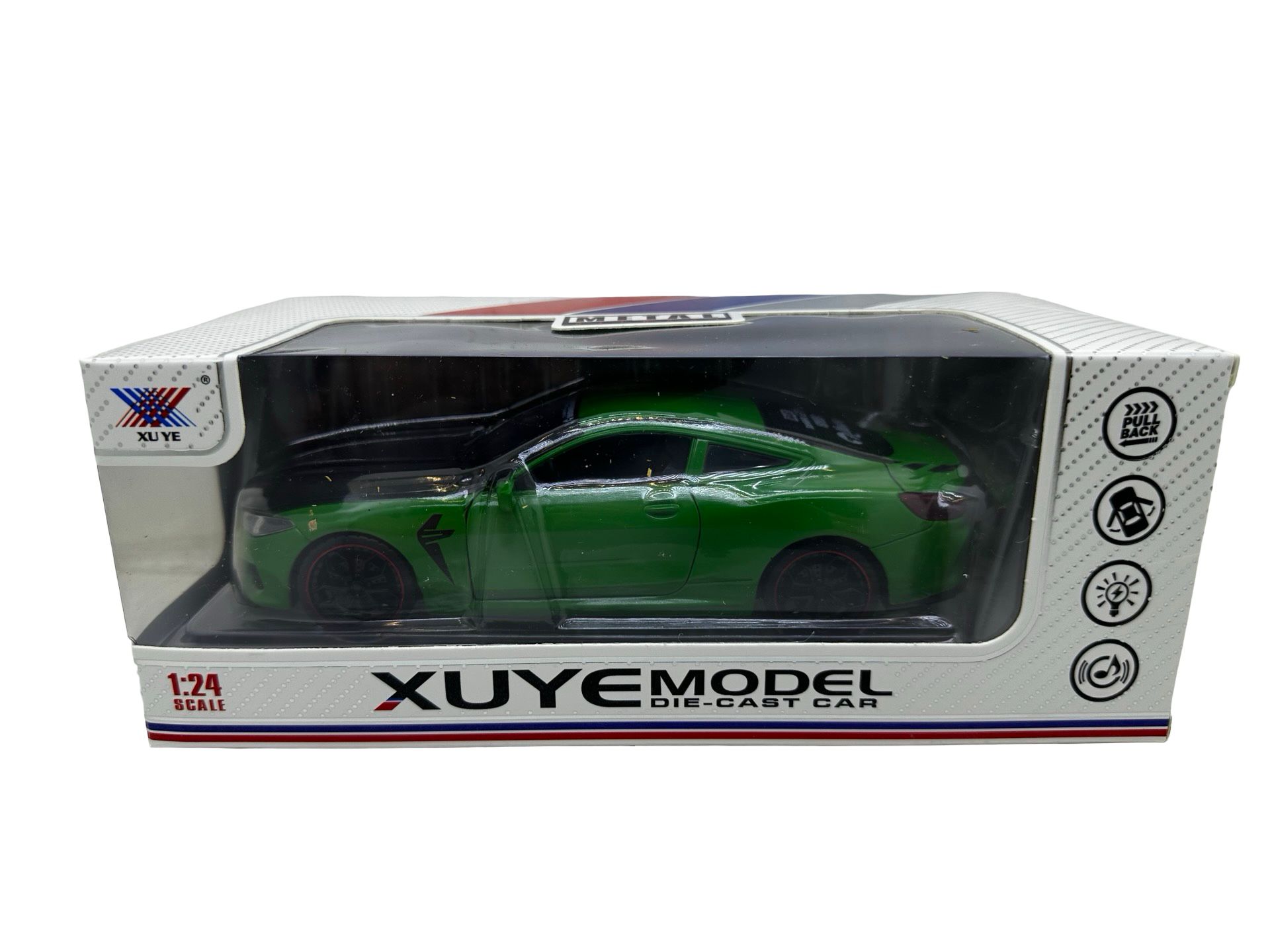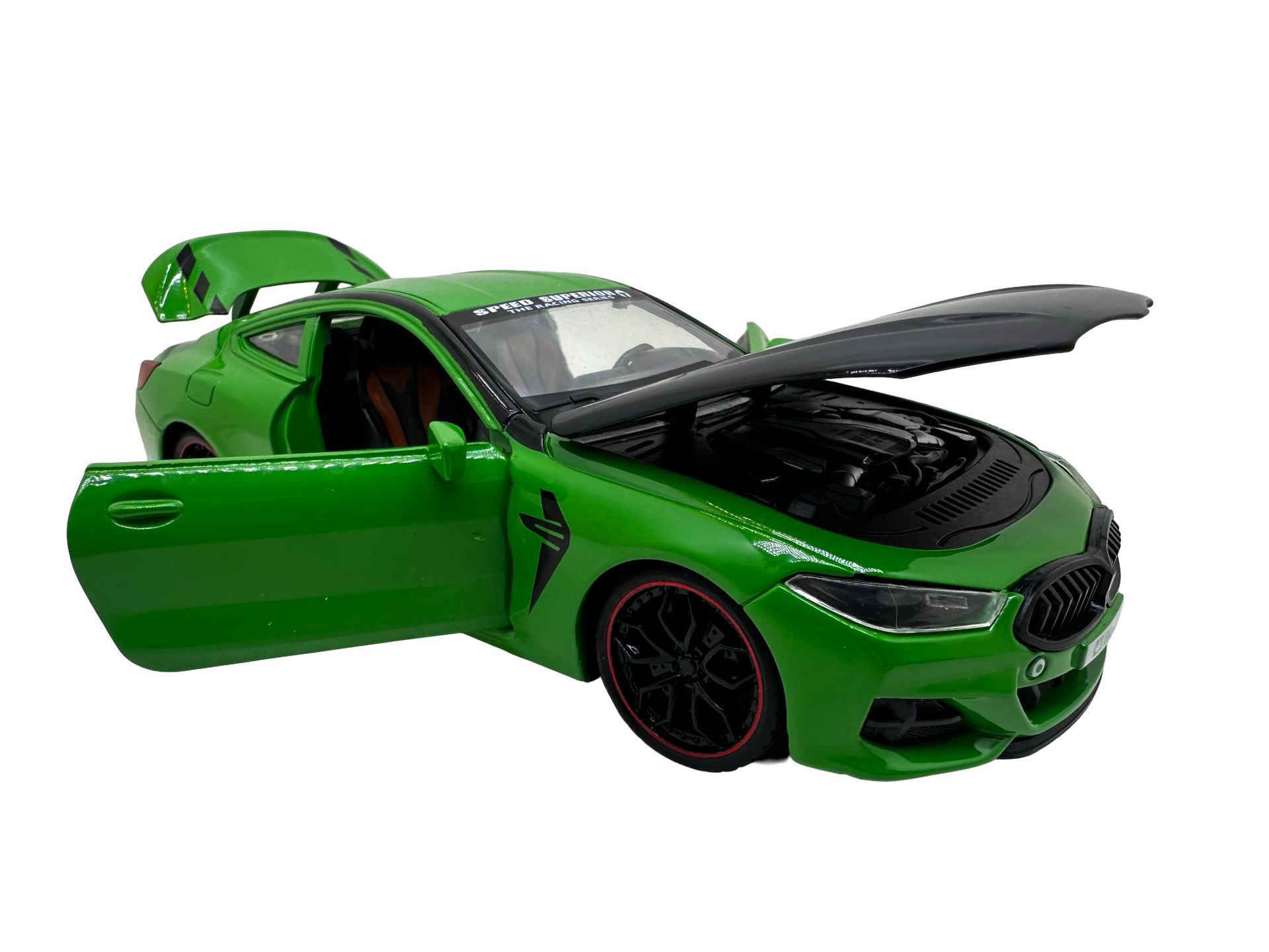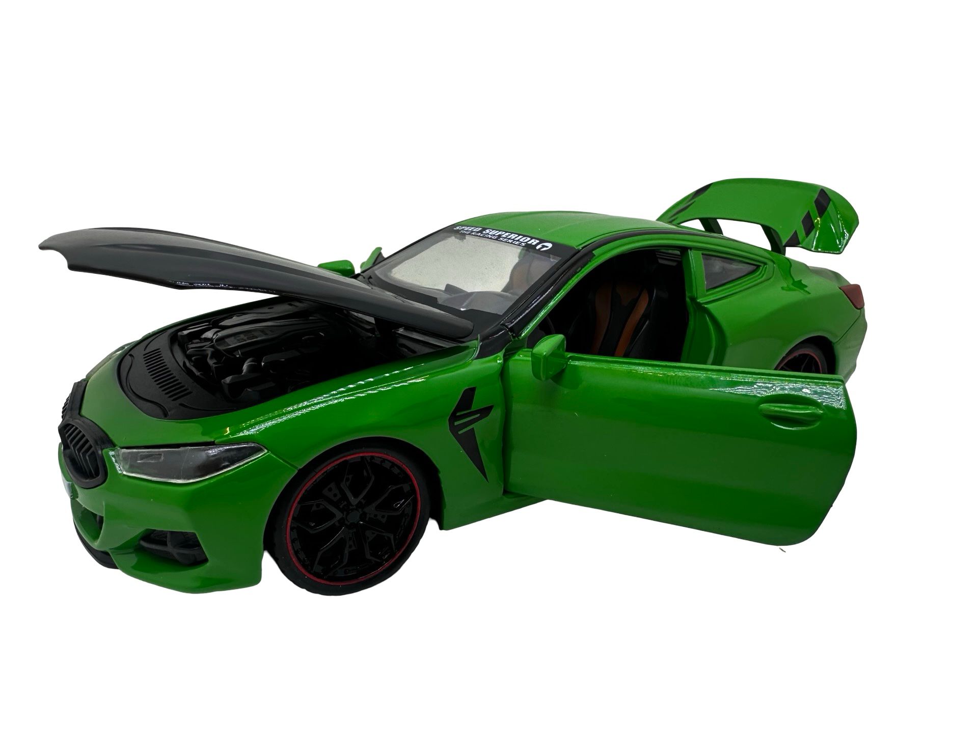 Macheta replica metal BMW M8 verde cu sunet si lumini deschide usile portbagajul capota 1/24