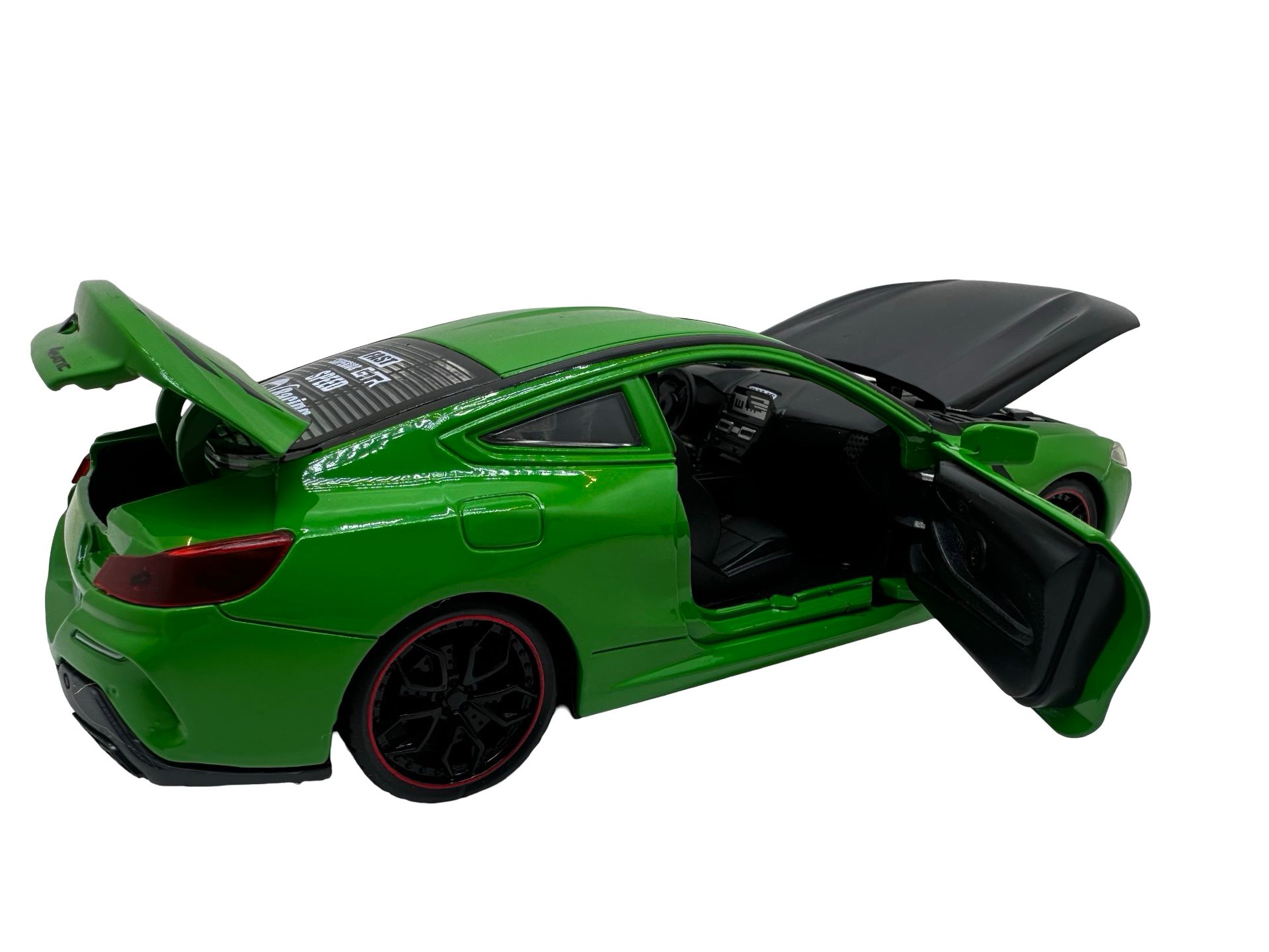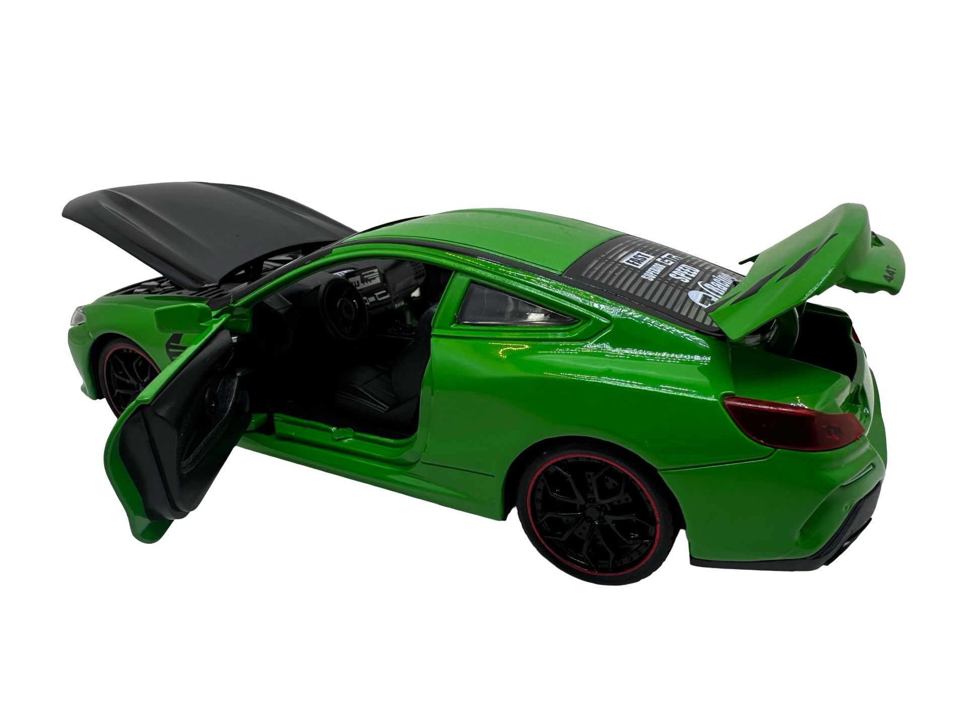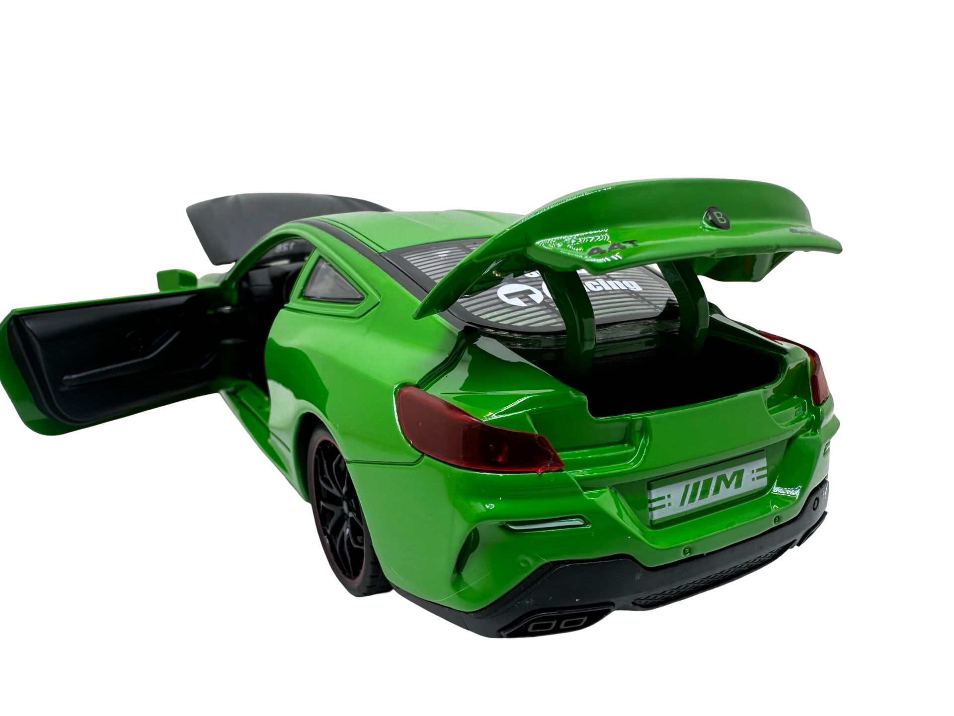 Macheta replica metal BMW M8 verde cu sunet si lumini deschide usile portbagajul capota 1/24