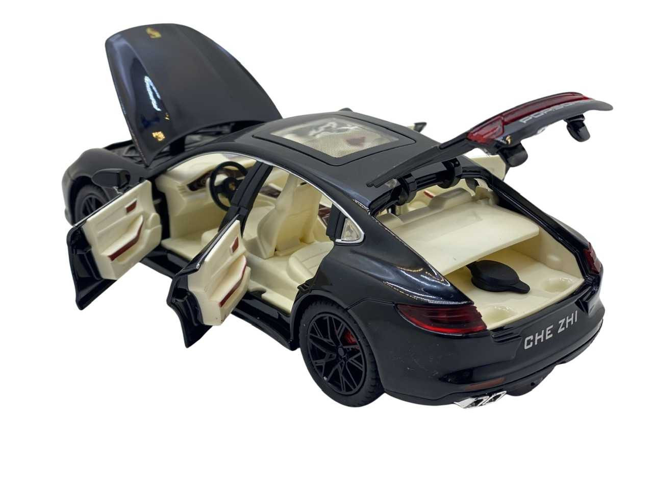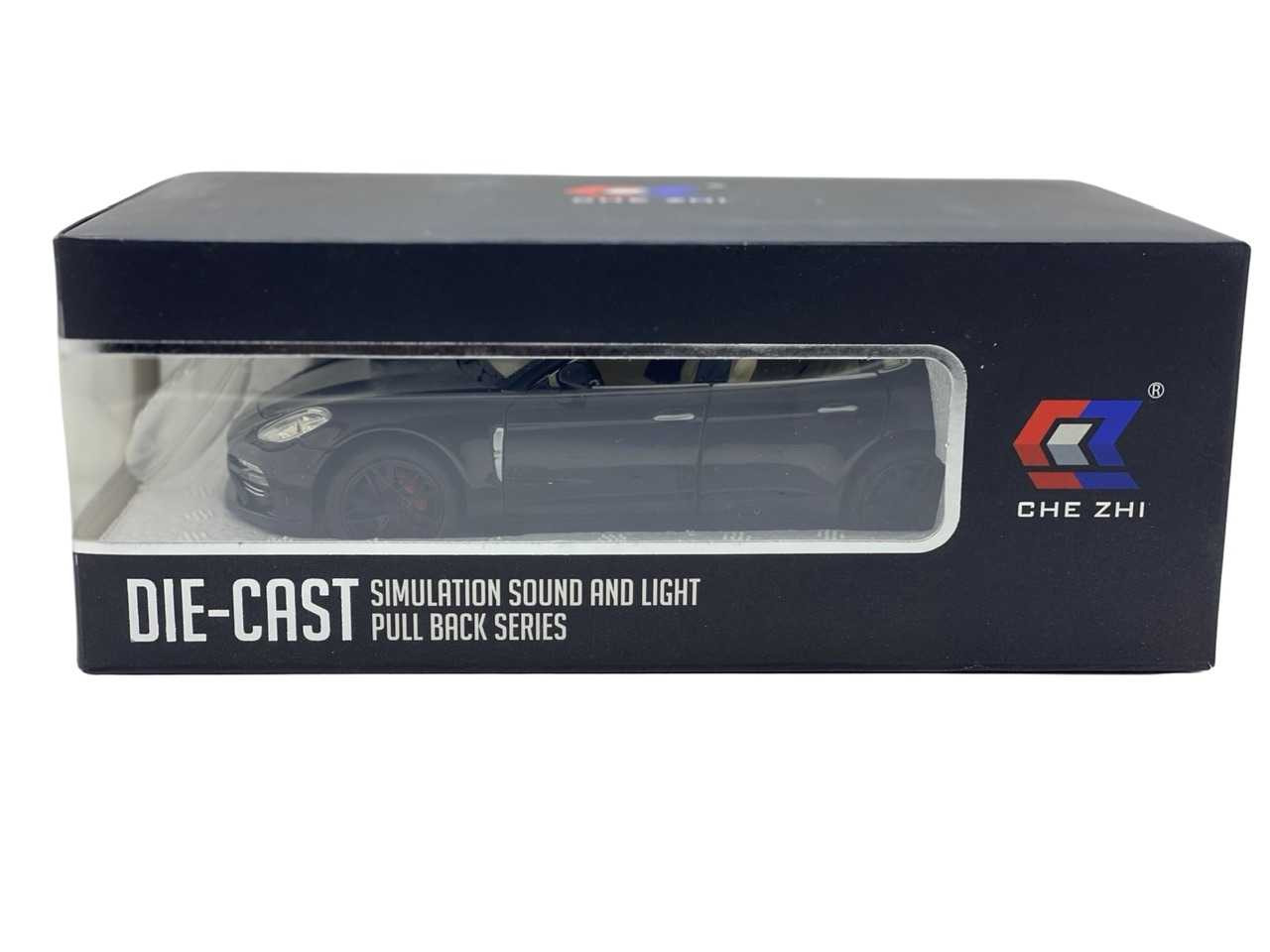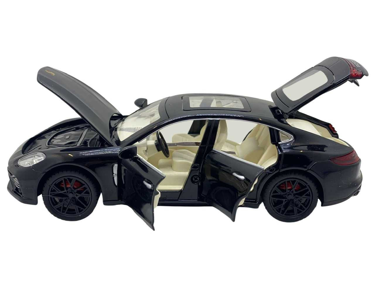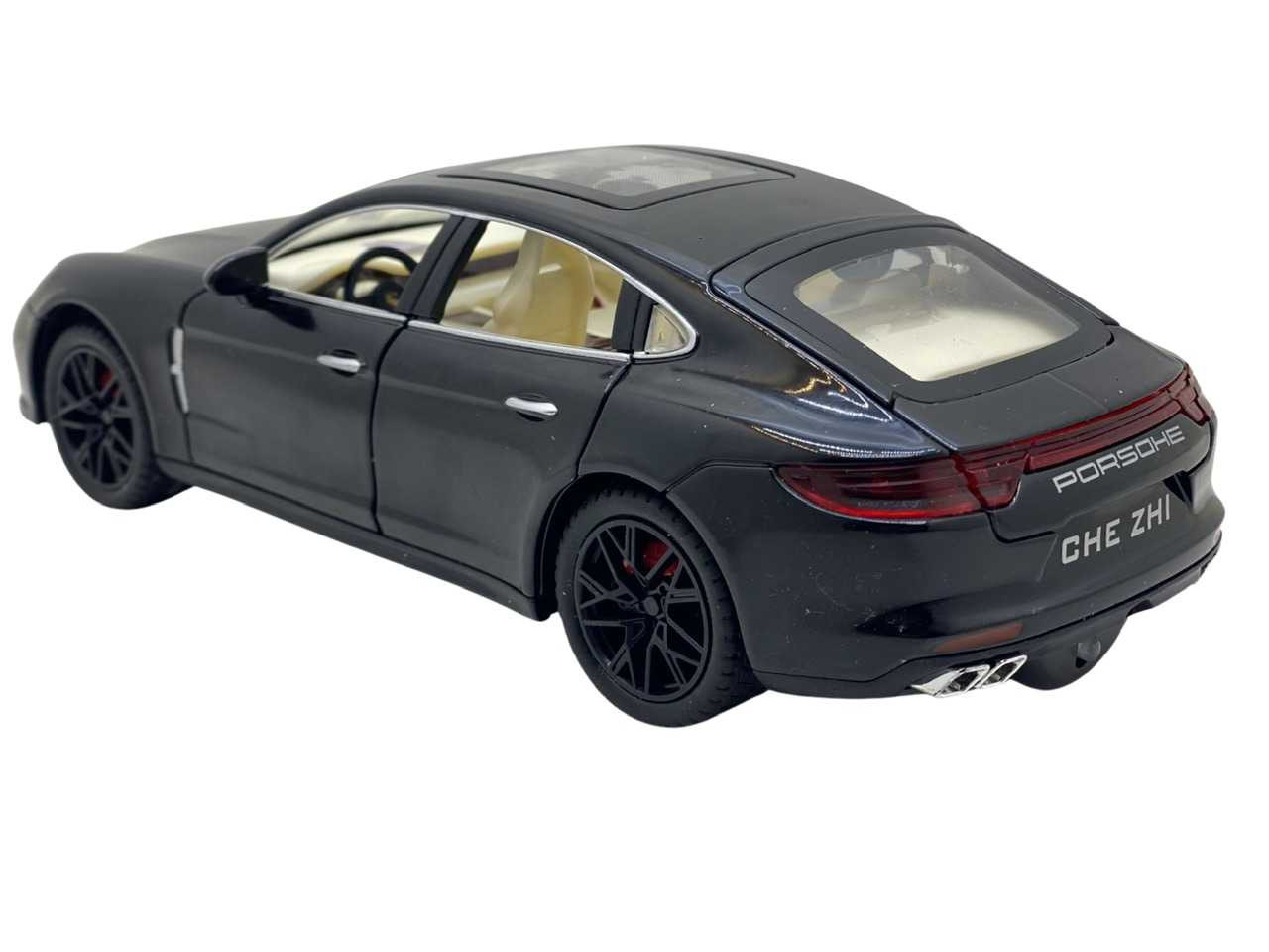 Macheta replica Porsche cu fum negru scara 1:24 ( 20 cm lungime). Masinuta are cutie proprie si are bateriile AAA incluse. Masinuta are sunete de motor care se activeaza atunci cand este usor apasata si merge in față. Cand se deschide usa de la sofer masinuta de asemenea emite sunete. Cea mai importanta caracteristica a acestor masinute este faptul ca deschide toate usile si capotele fata-spate. Masina contine un recipient unde se poate turna apa, ca sa scoata fum. Finisajele de asemenea sunt de calitate foarte bune cu detalii si la interior. Recomandata copiilor cu varsta peste 3 ani.