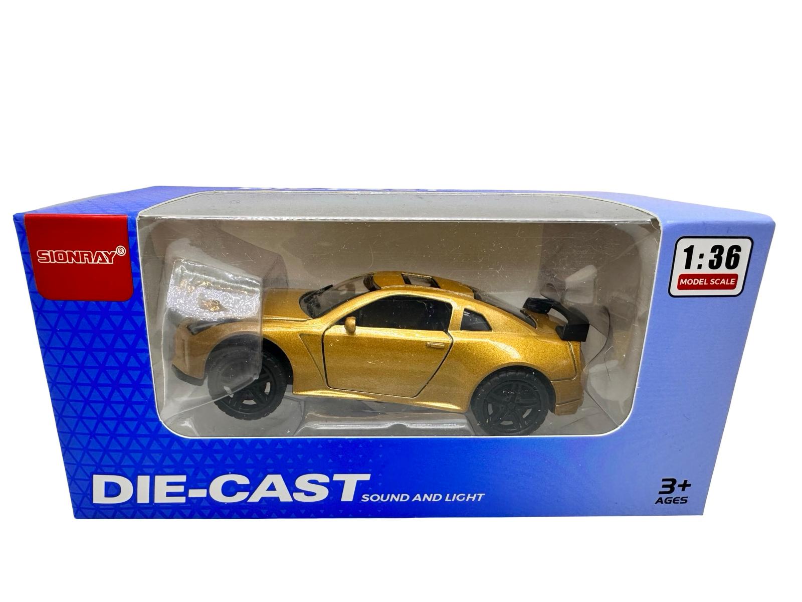Macheta Nissan GRT replica aurie 1:36 lumini si Sunete Usi Deschise Pull-Back