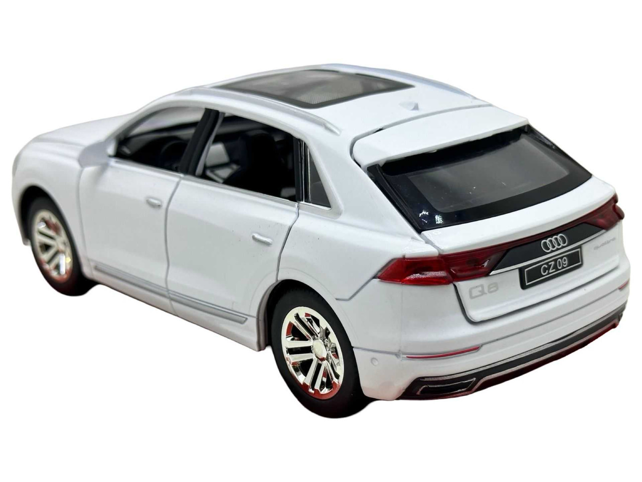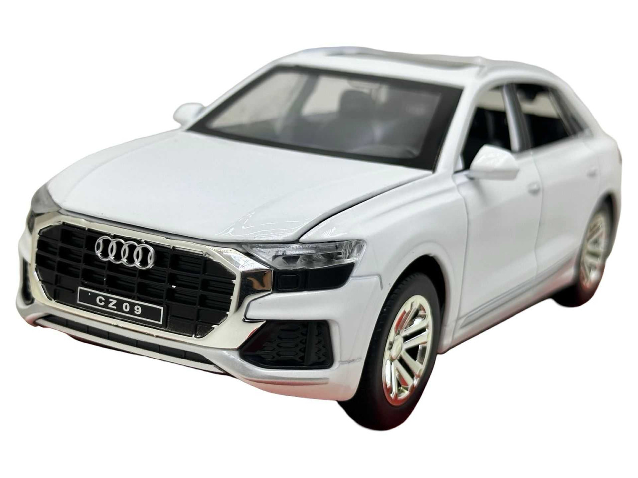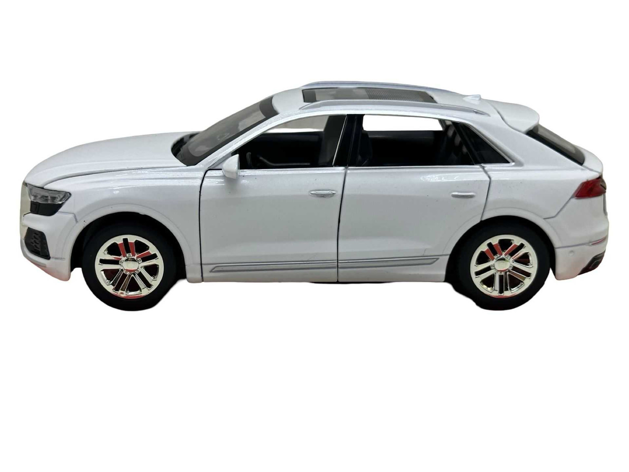 Macheta SUV Audi Q8 Die-Cast 1:24 Alb –sunete, lumini si resort- 20cm