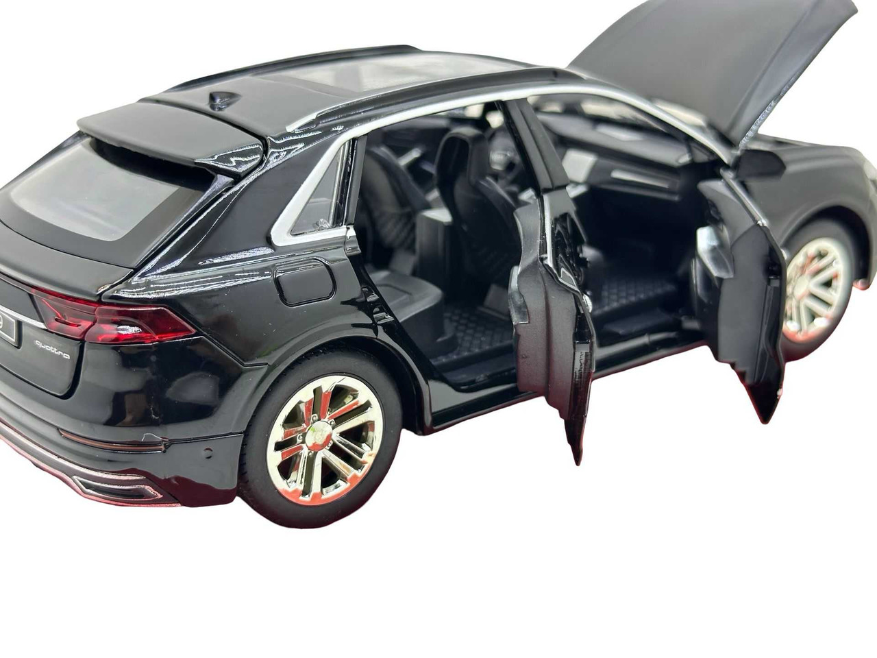 Macheta SUV Audi Q8 Die-Cast 1:24 Negru – sunete, lumini si resort- 20 cm