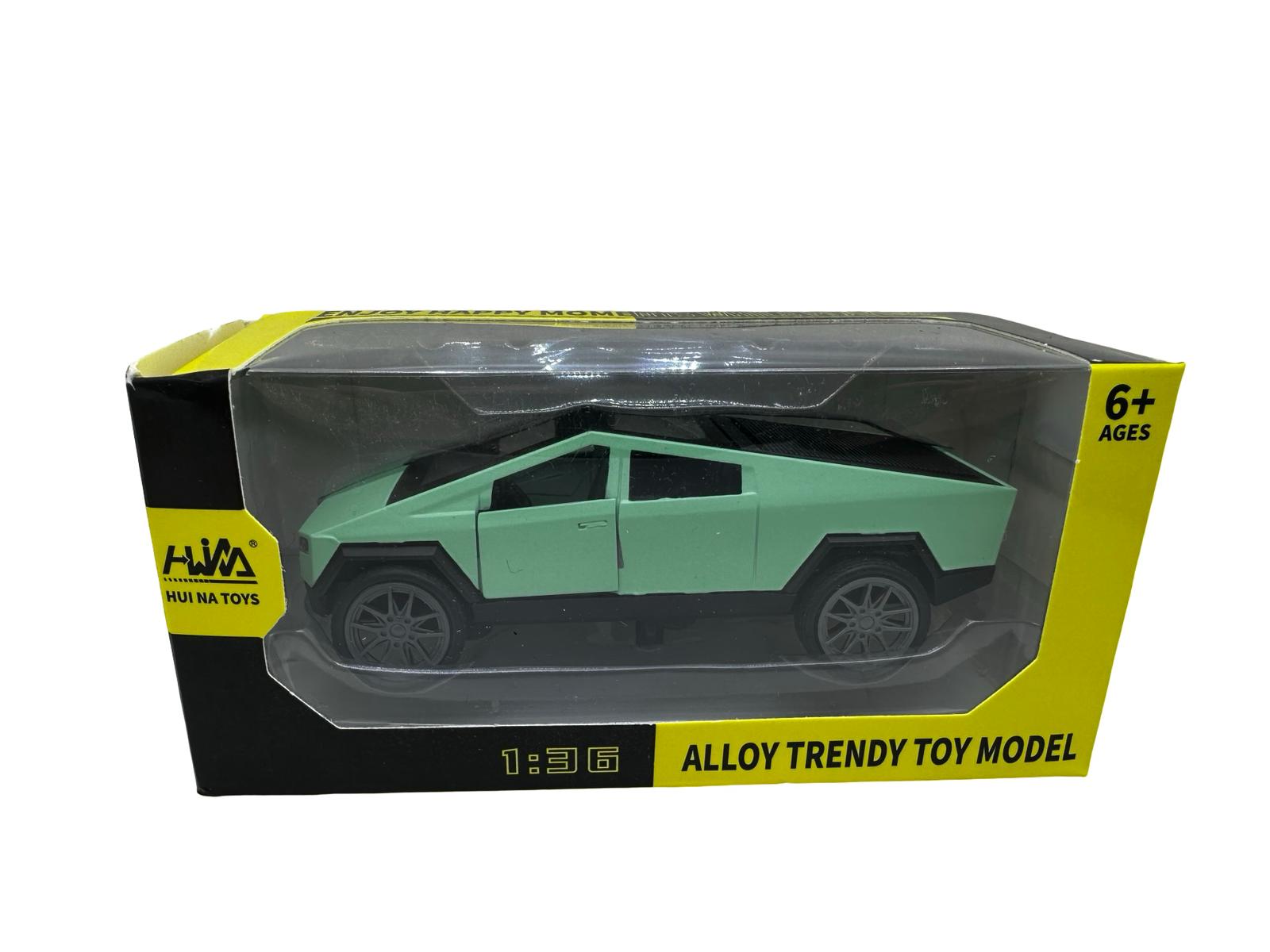 Macheta Tesla Cybertruck verde replica metal scara 1:36 lumina si sunet