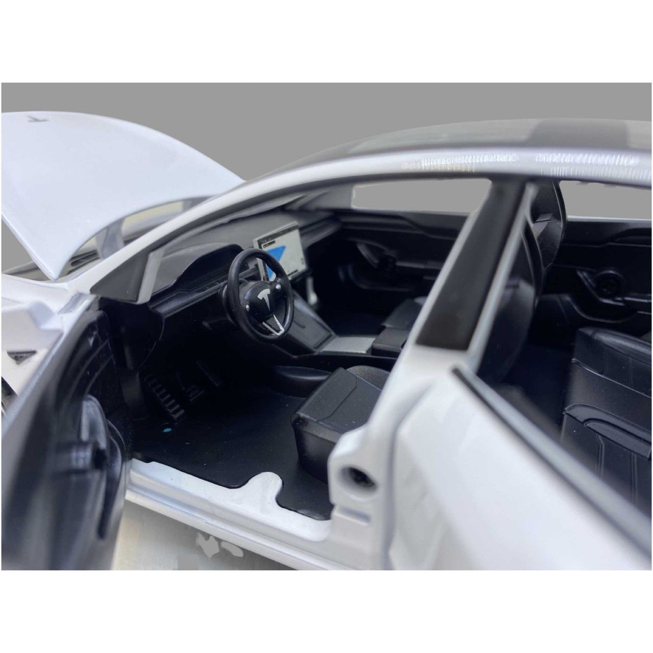 Macheta Tesla Model 3 alba deschide 4 usi, portbagaj si capota, lumini si sunete