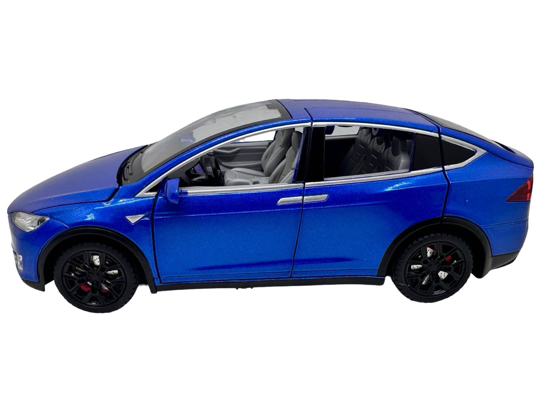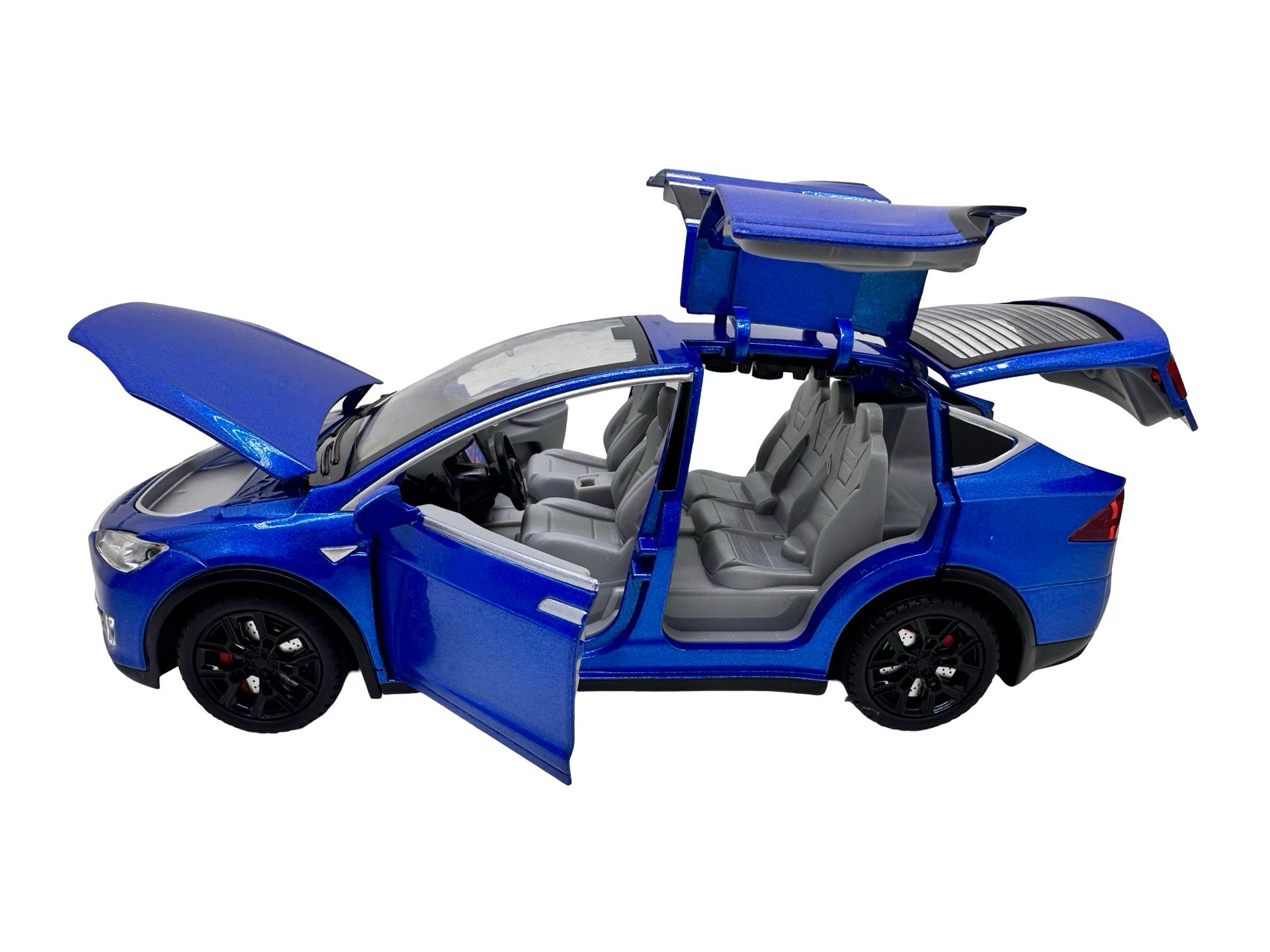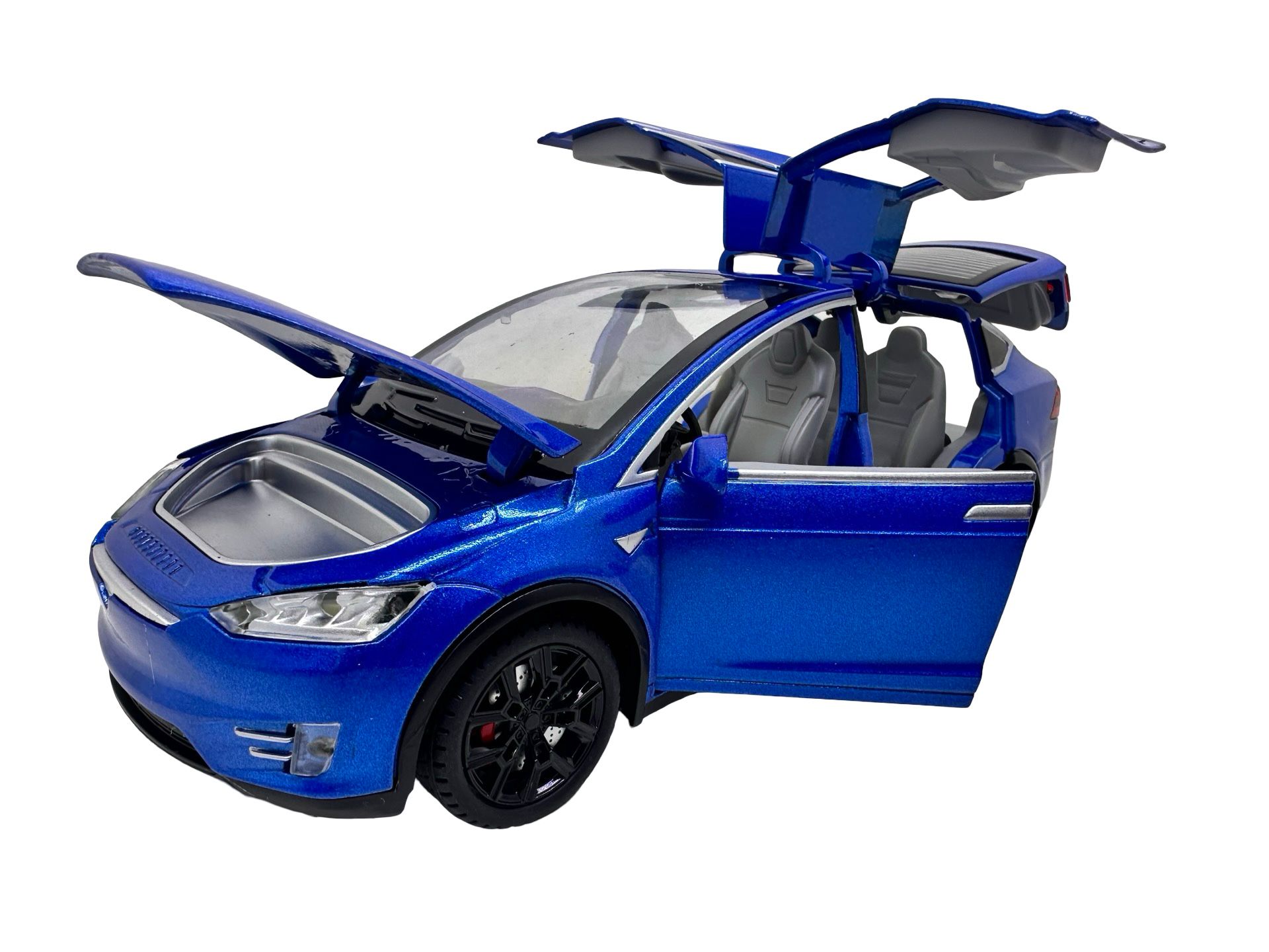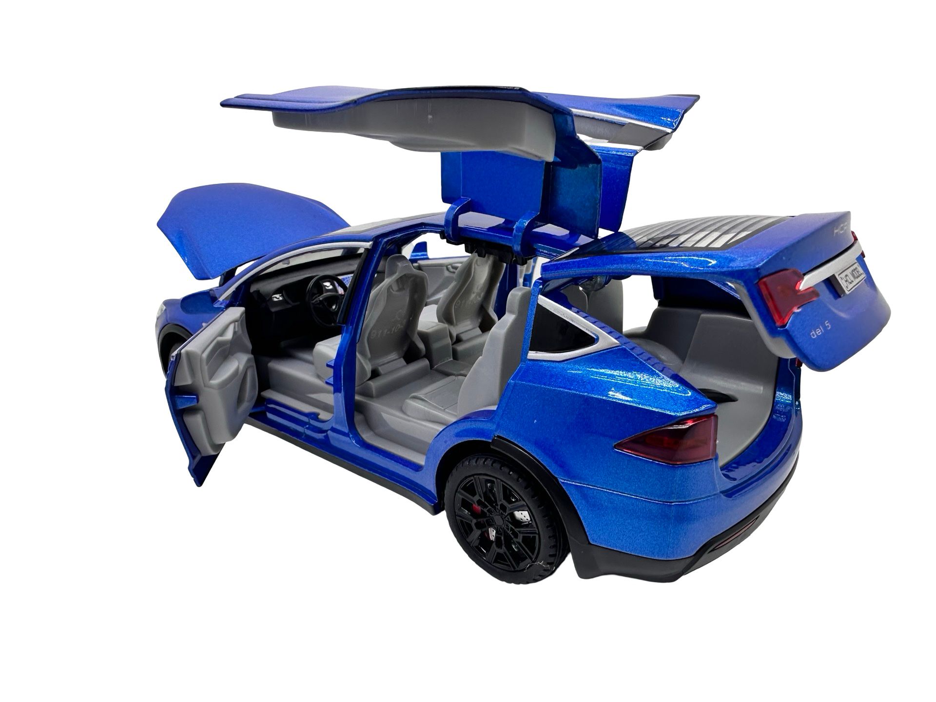 Macheta Tesla Model X albastru 1:22 replica metal cu radiocomanda, lumini si usi functionale