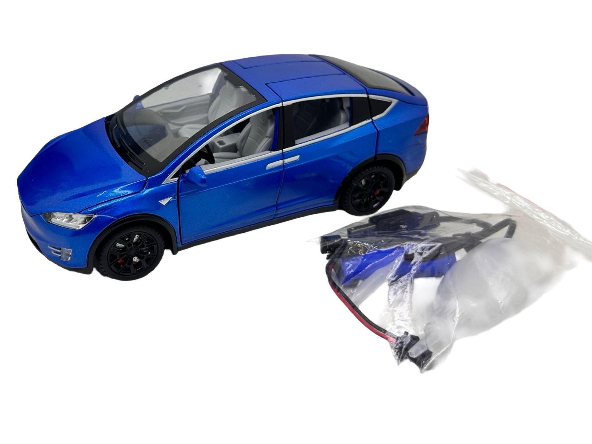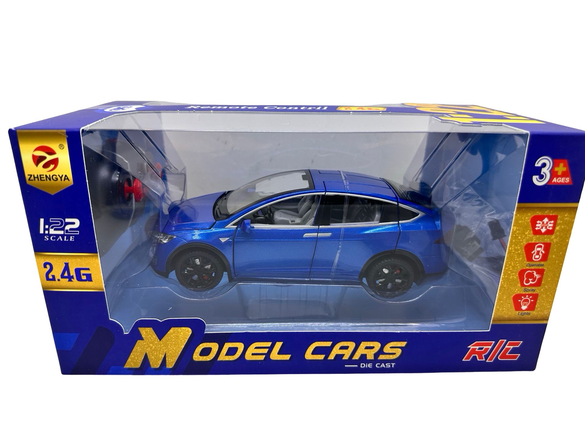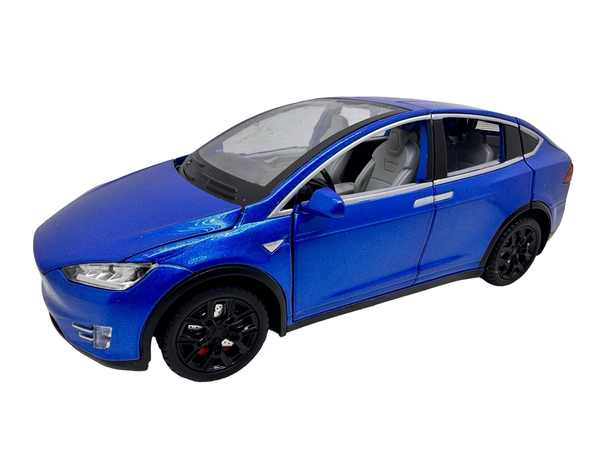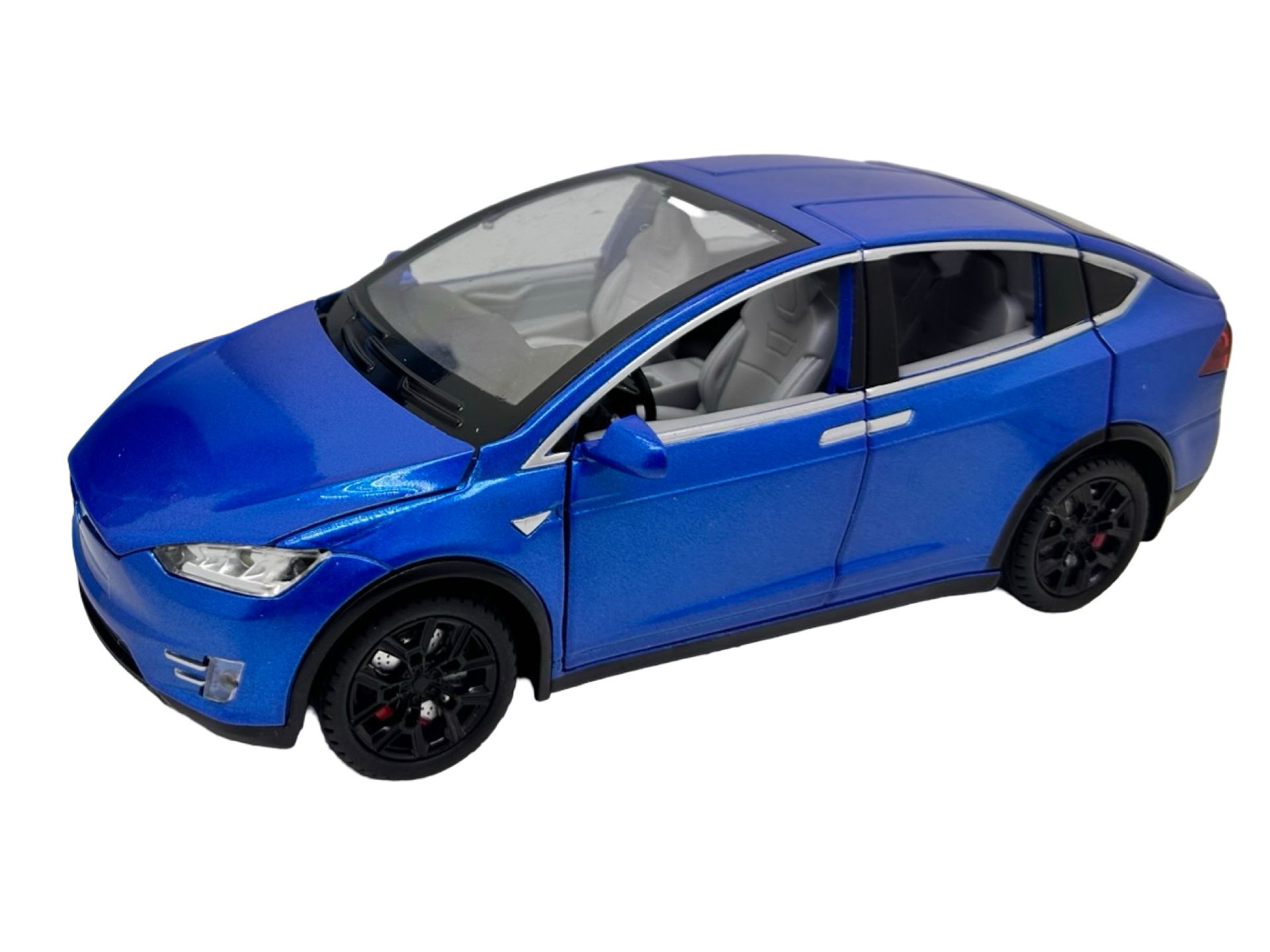 Macheta Tesla Model X albastru 1:22 replica metal cu radiocomanda, lumini si usi functionale