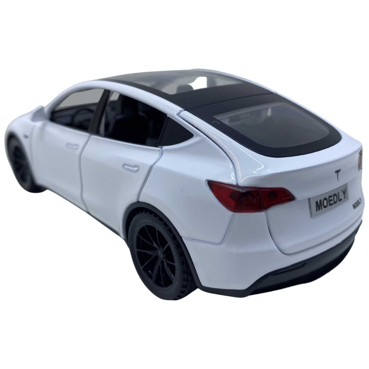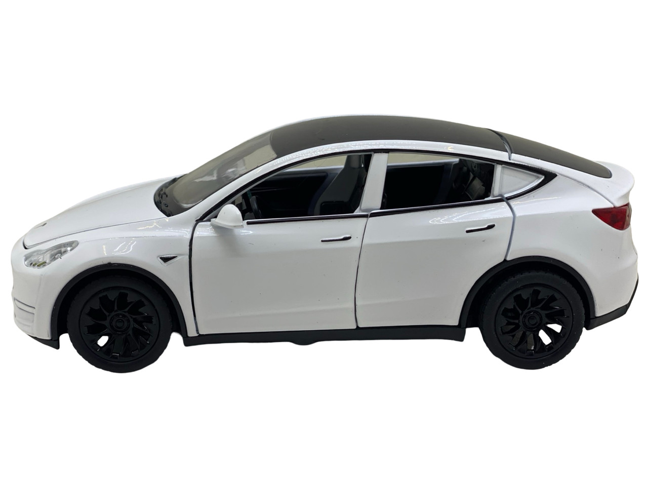 Macheta Tesla Model Y alba deschide 4 usi, portbagaj si capota, lumini si sunete