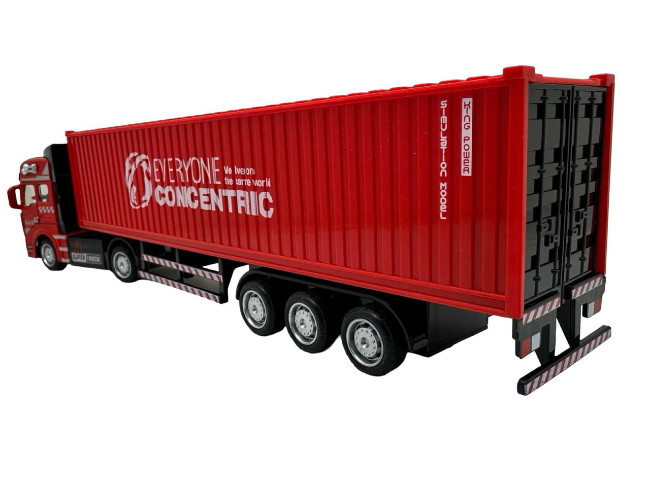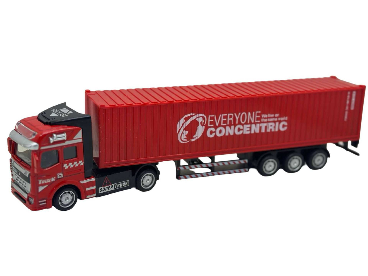Pregateste-te pentru curse epice cu acest camion container metalic Truck King! Cu un design realist si detalii captivante, aceasta macheta este perfecta pentru micii pasionati de camioane sau pentru colectionari. Cabina este confectionata din metal die-cast, iar containerul rosu este inscriptionat cu mesajul „Everyone Concentric – We live on the same world”, inspirand aventura si unitate.