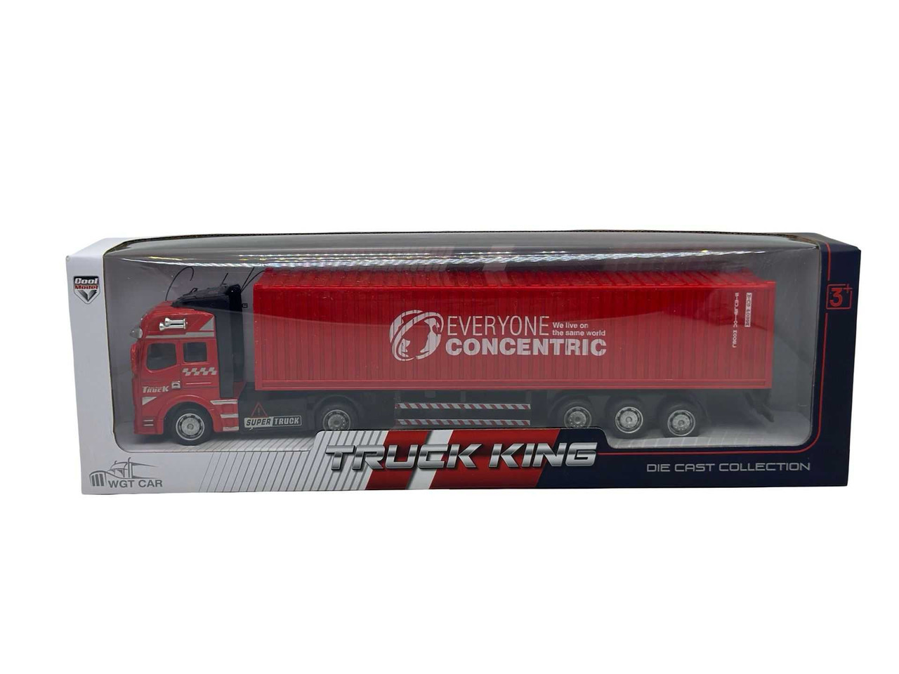 Macheta Tir Camion container rosu metalic Truck King, replica die-cast cu remorca detasabila