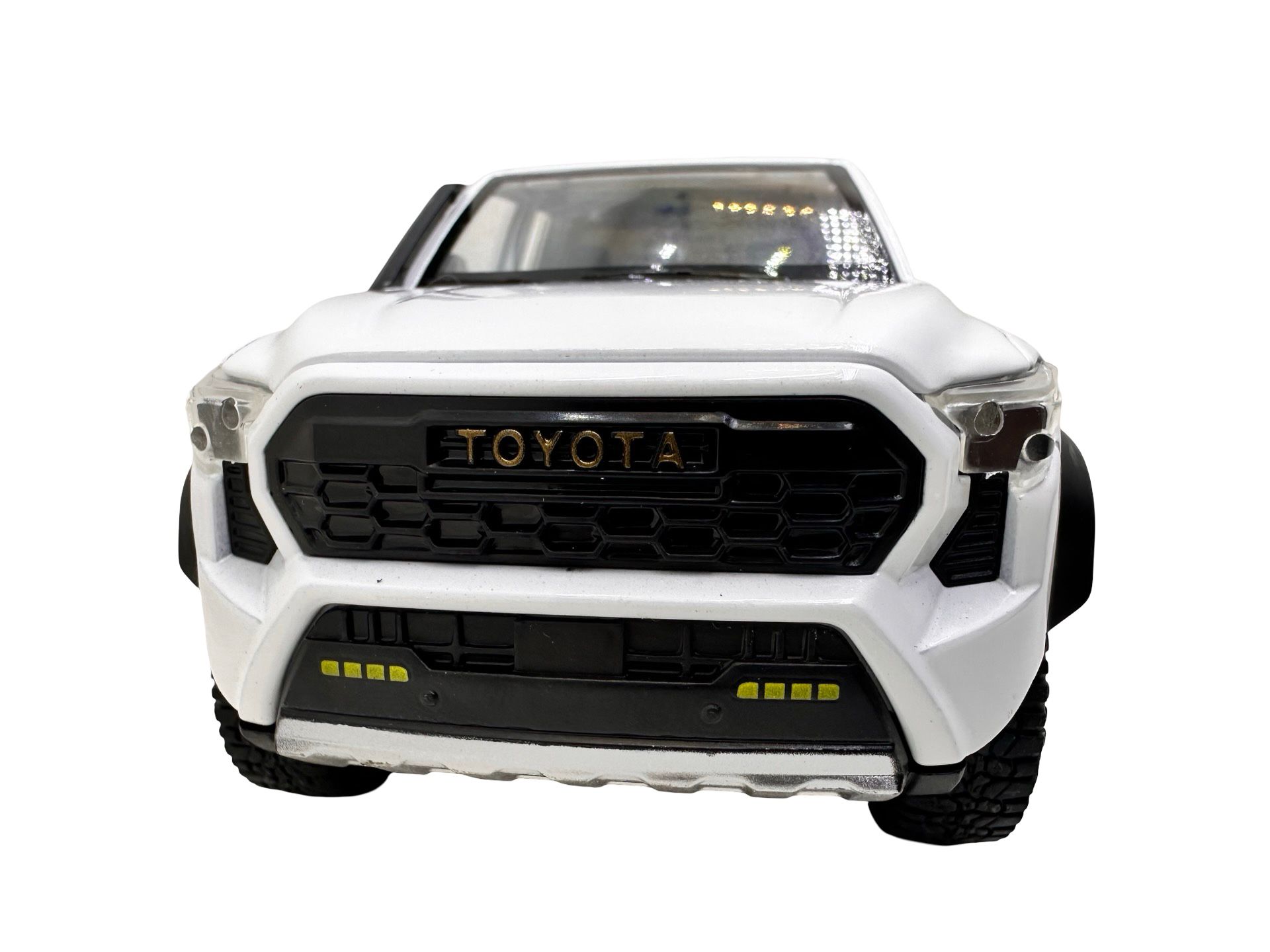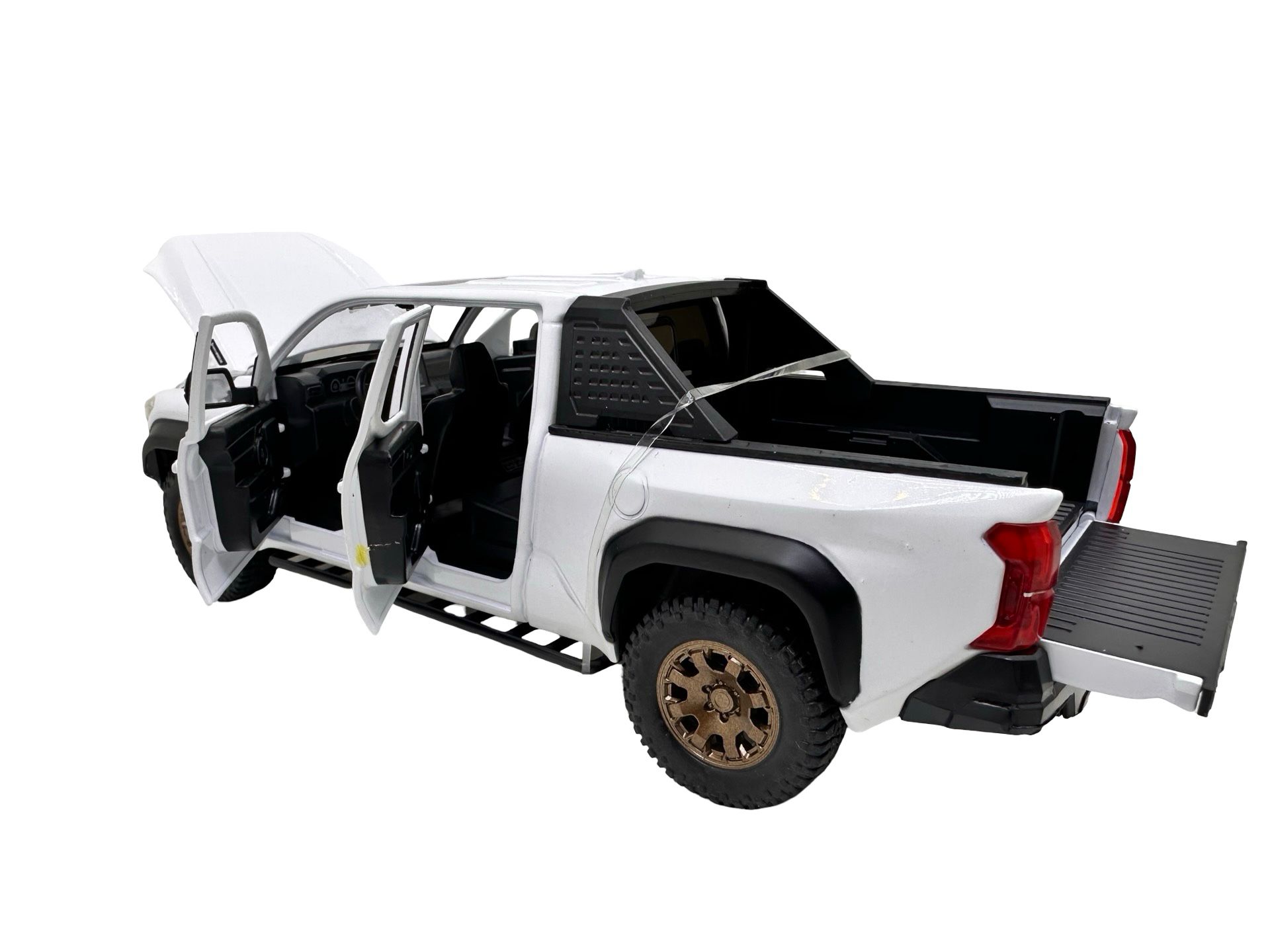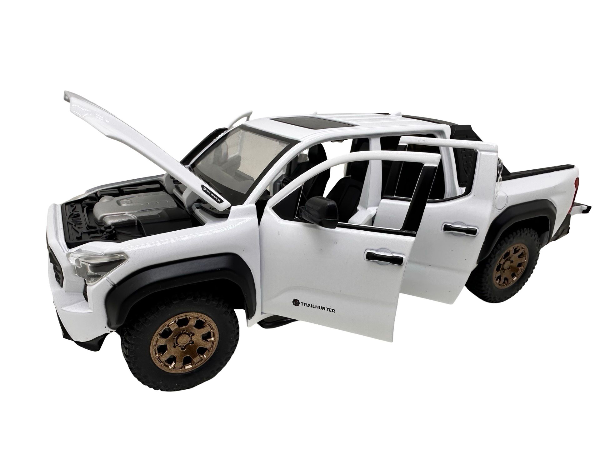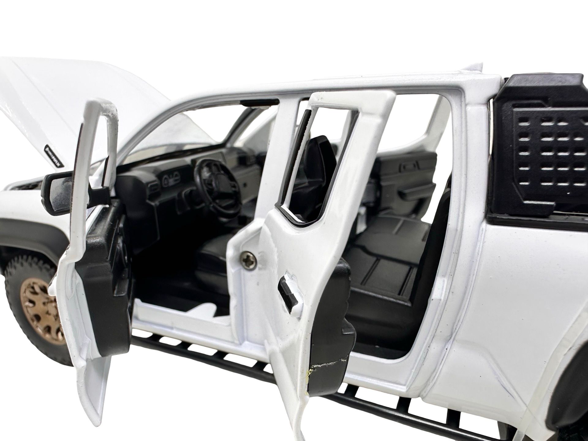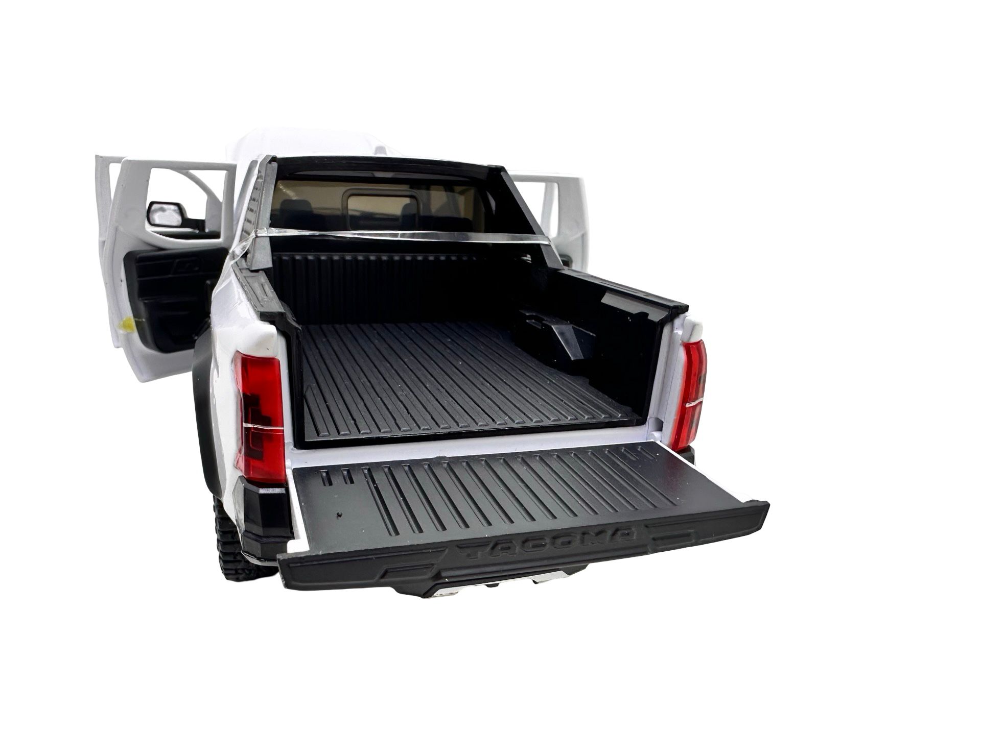 Macheta Toyota Tacoma 1:24 replica metal alba lumini si sunete usi si capota functionale