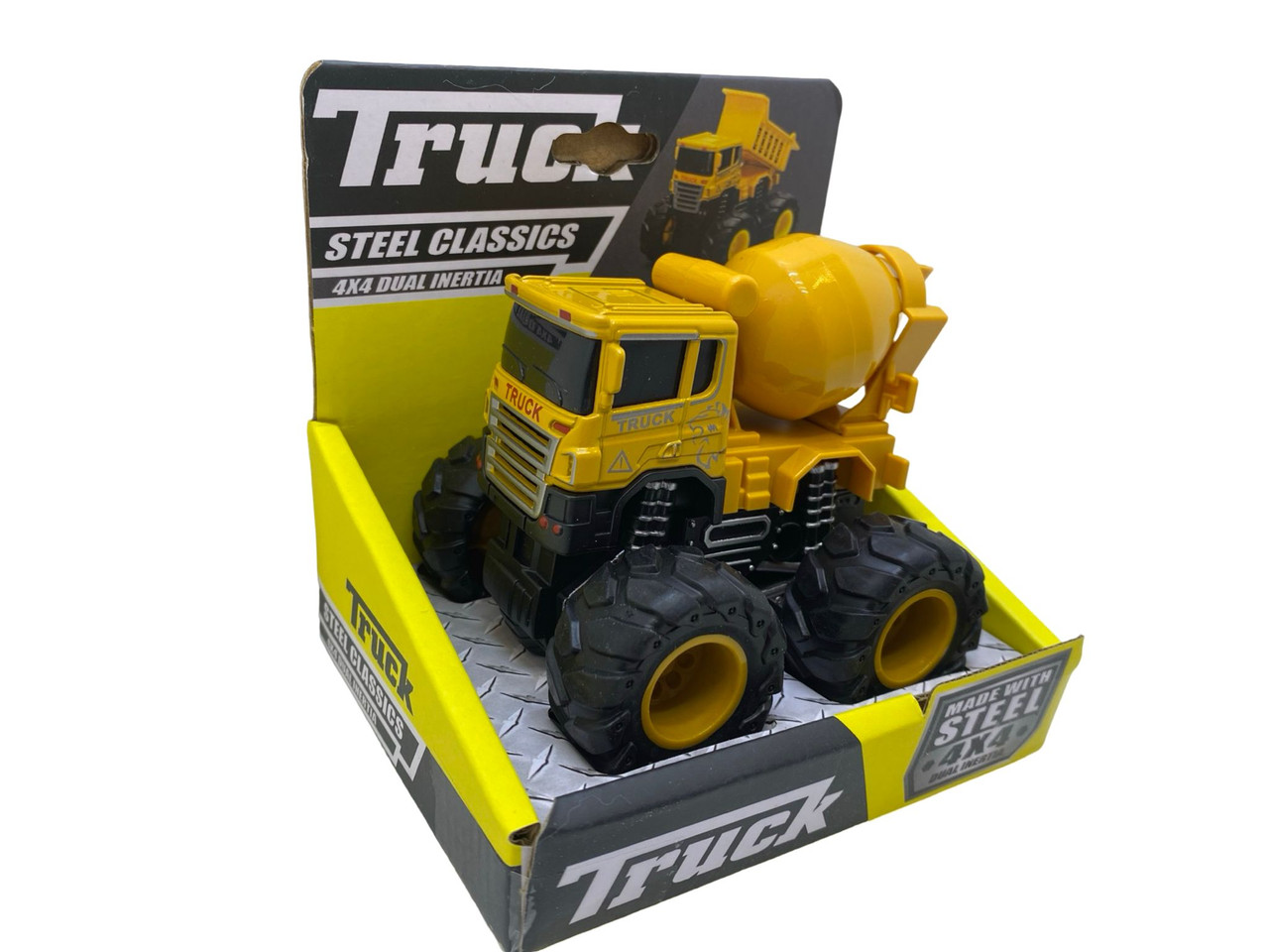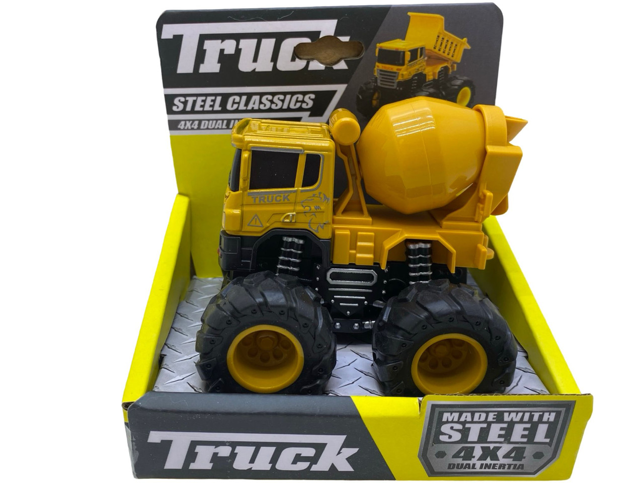 Macheta Truck – betoniera realizat din metal si plastic. Dimensiune 10×10 cm. Se poate deplasa daca este impins cu mana, rotile din cauciuc asigurand mobilitatea. Este recomandat copiilor peste 3 ani.