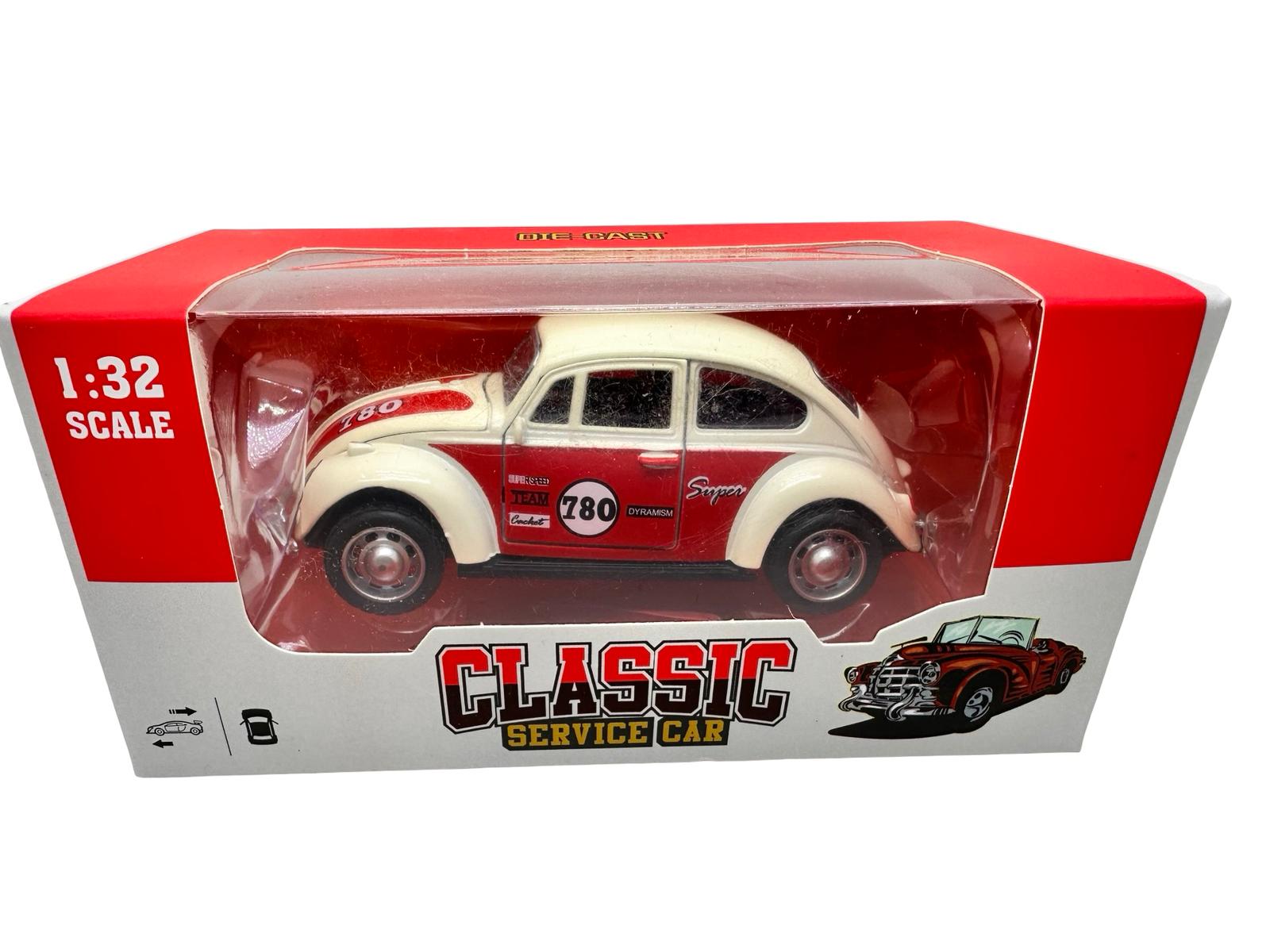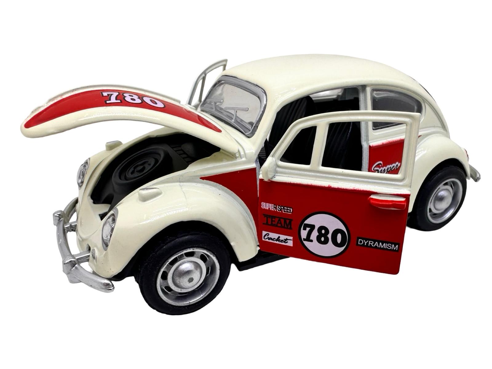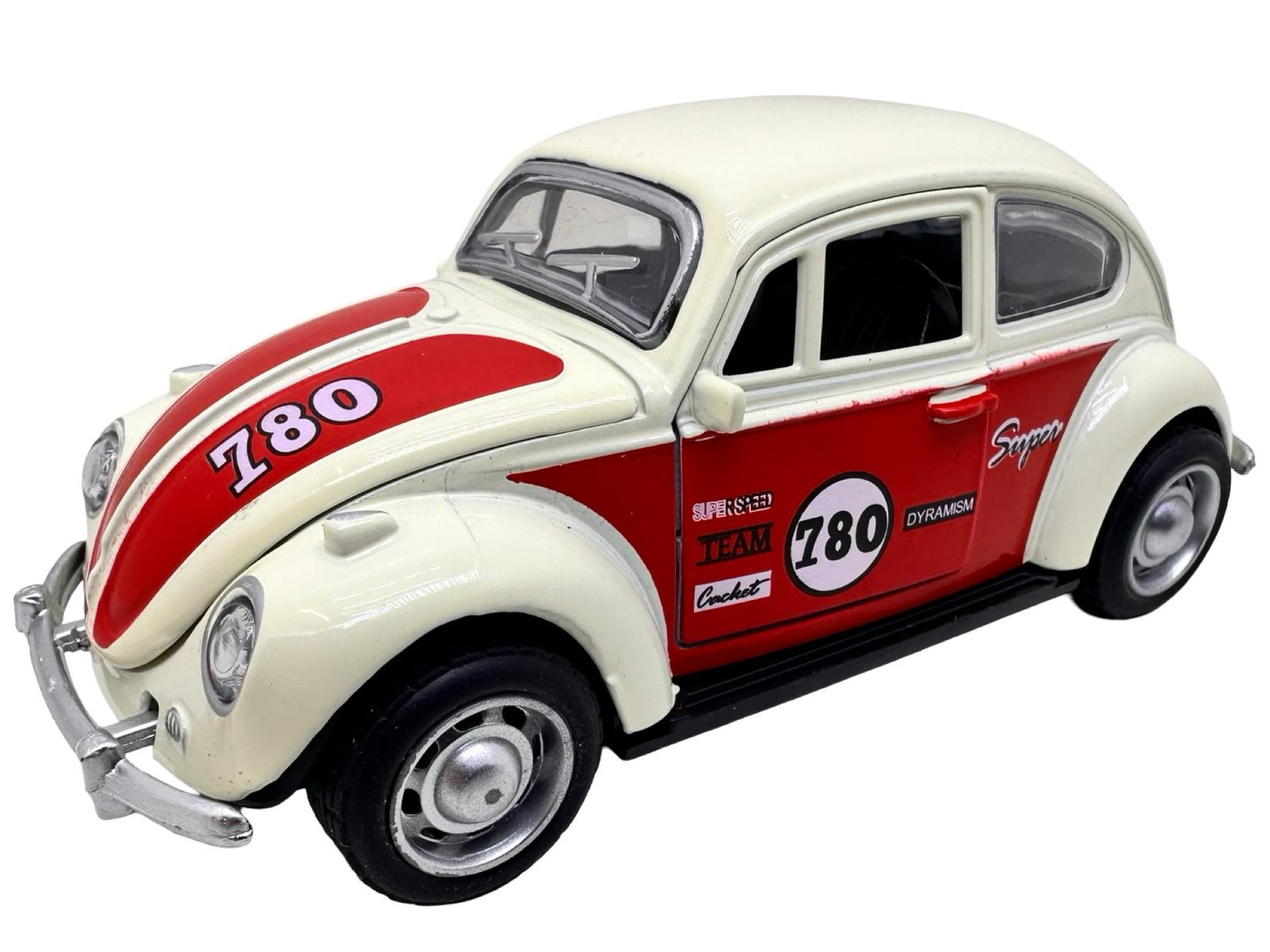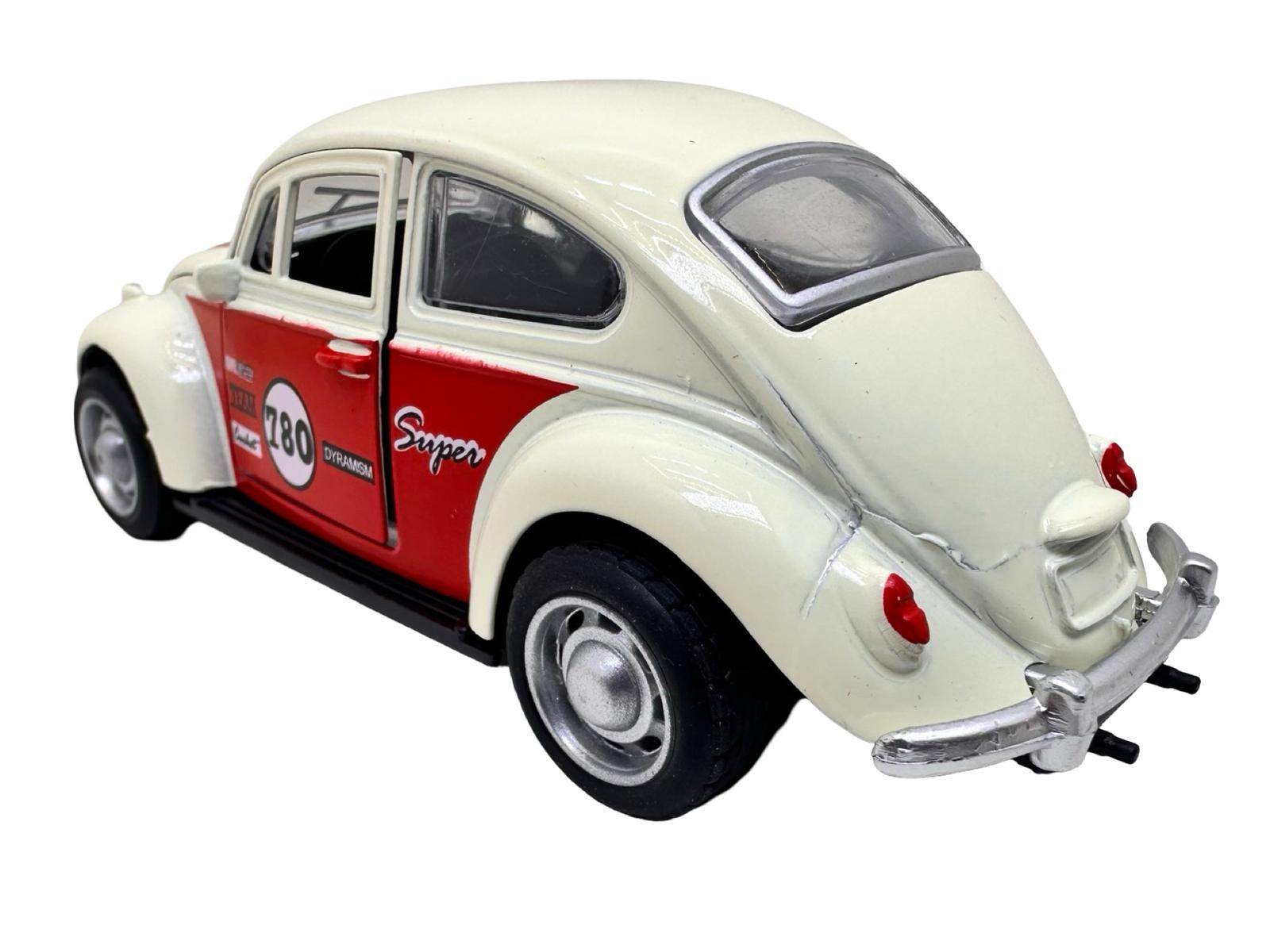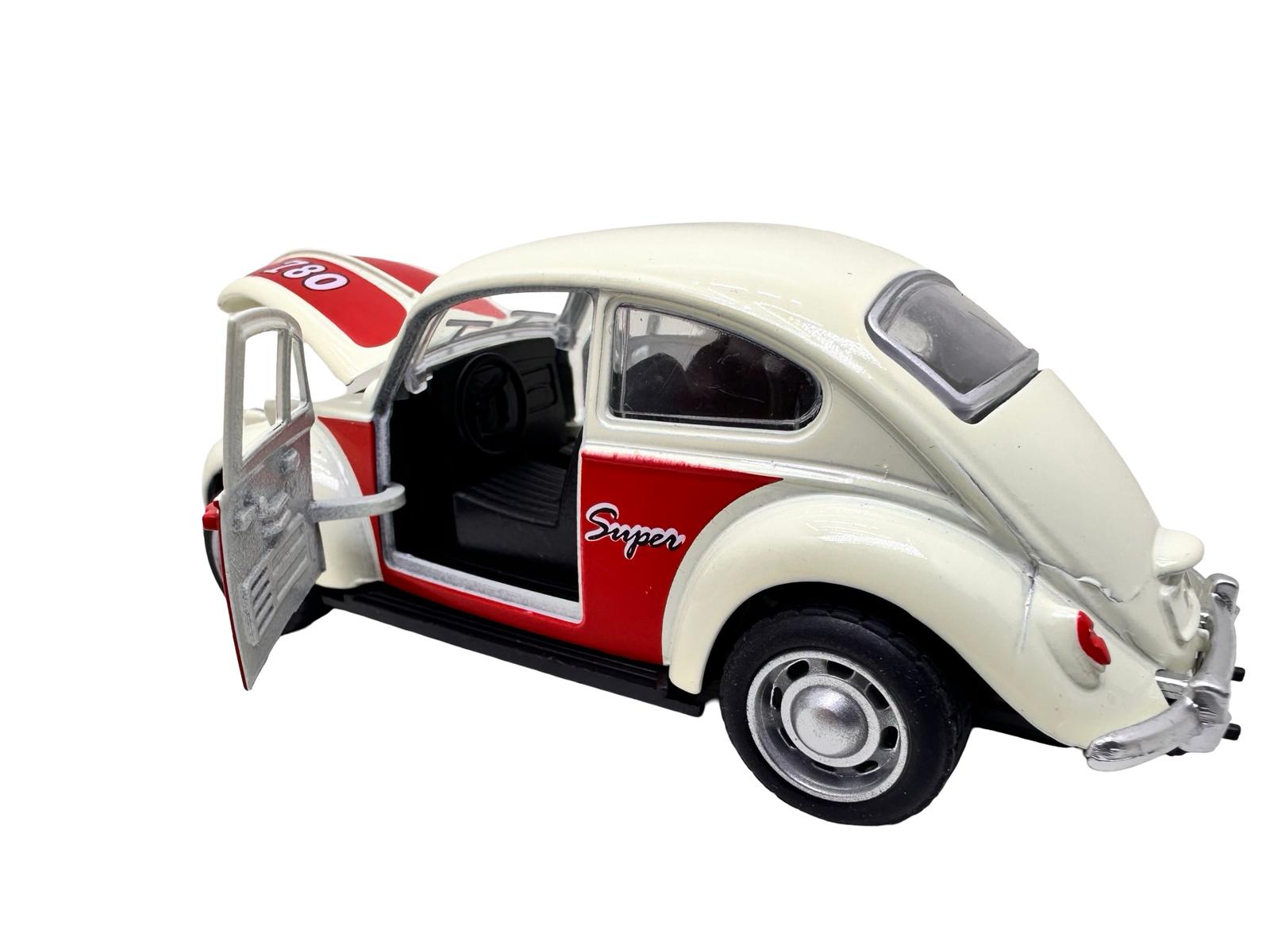 Macheta Volkswagen Beetle clasica crem rosu1:32 replica metal usi deschise lumini si sunete