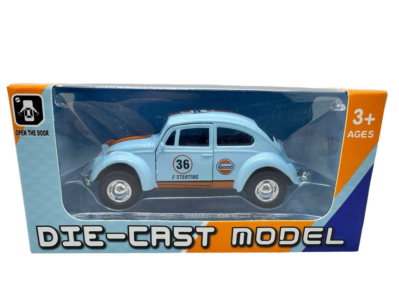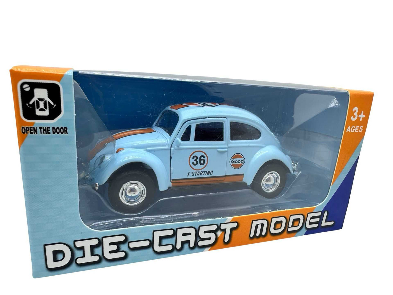 Revino in epoca de aur a automobilismului cu aceasta macheta Volkswagen Beetle la scara 1:43! Realizata din metal turnat (die-cast) cu detalii fine, aceasta reproducere fidela a legendarei „Buburuze” este perfecta pentru pasionatii de masini clasice si colectionarii de modele auto. Designul retro este completat de decoratiuni sportive si usi functionale, care se deschid pentru un plus de realism.