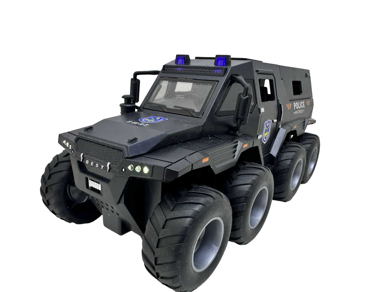 Masina de Politie Blindata 22cm cu lumini si sunete, farurile se aprind si efecte rosu-albastru