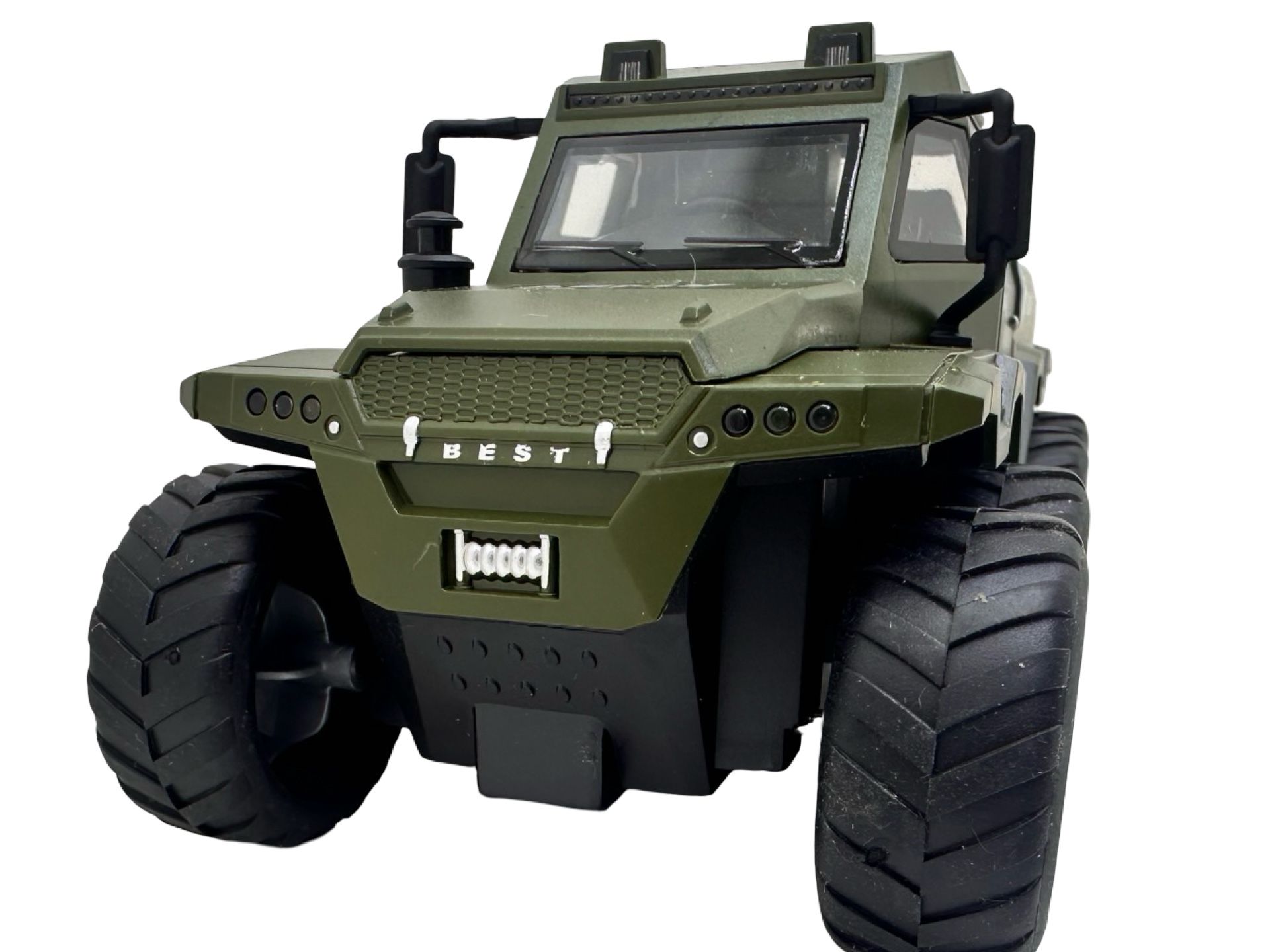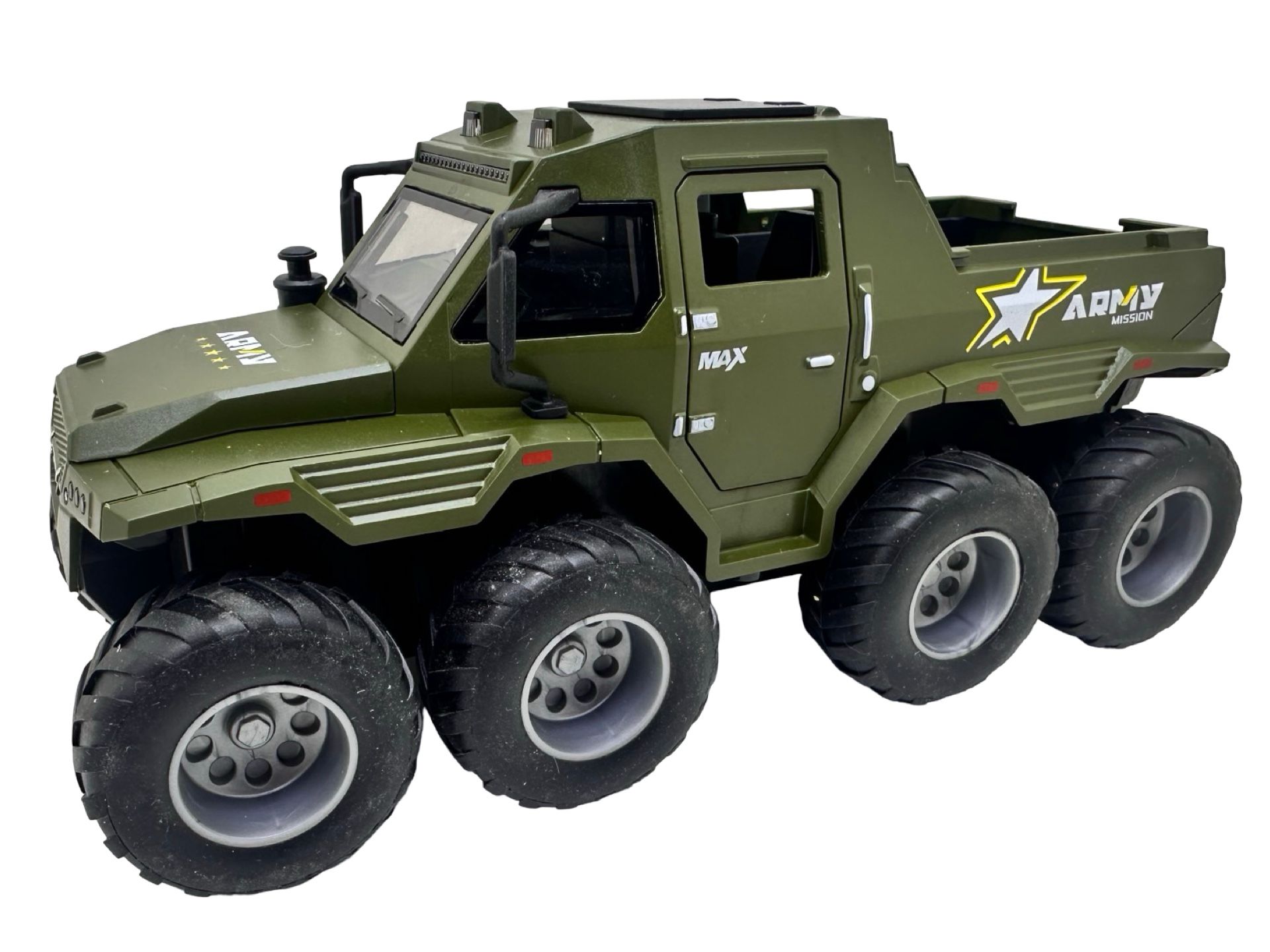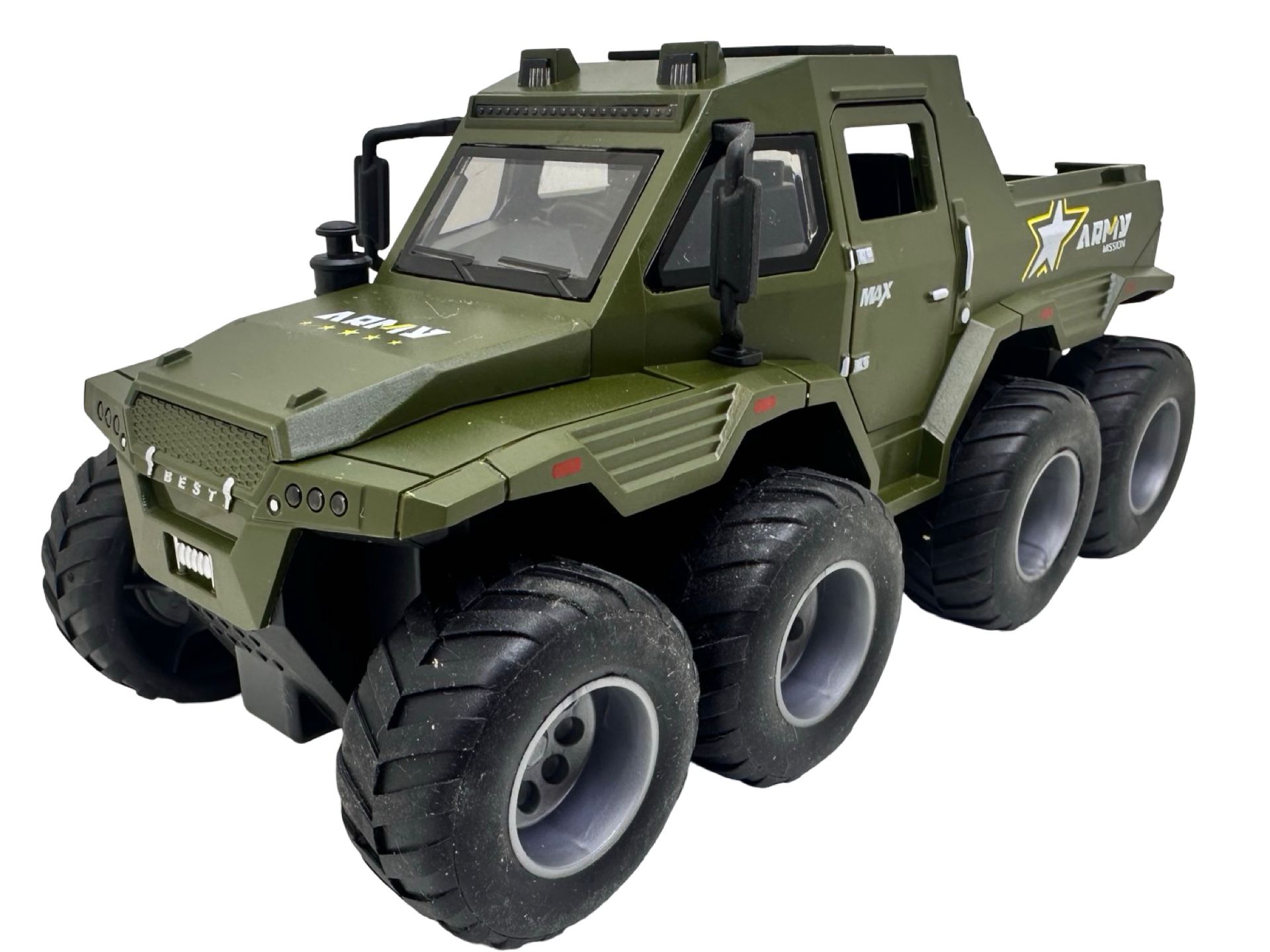 Aceasta masina militara 8×8 este alegerea perfecta pentru micii pasionati de vehicule de teren si actiune! Cu un design masiv si impunator, inspirat de vehiculele tactice reale, jucaria atrage imediat atentia prin detalii realiste si o structura robusta.