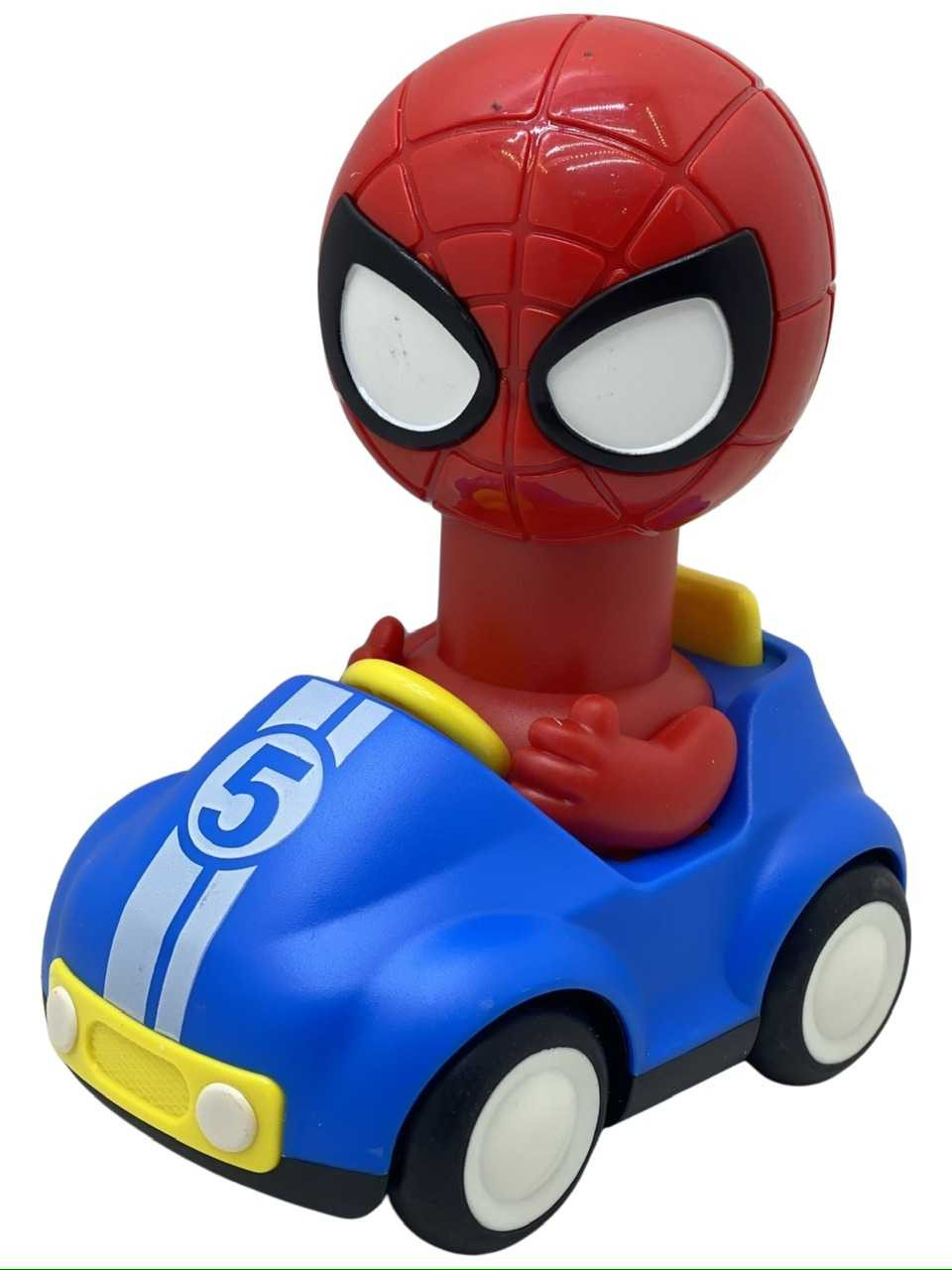 Masina Spiderman mecanica cu apasare. Nu functioneaza cu baterii dar la apasarea in partea de sus masina se va apasa in jos si va incorda un arc. Acesta va pune in miscare rotile din spate care se vor roti si astfel tot andamblul va fi lansat inainte. Este recomandat copiilor peste 3 ani.
