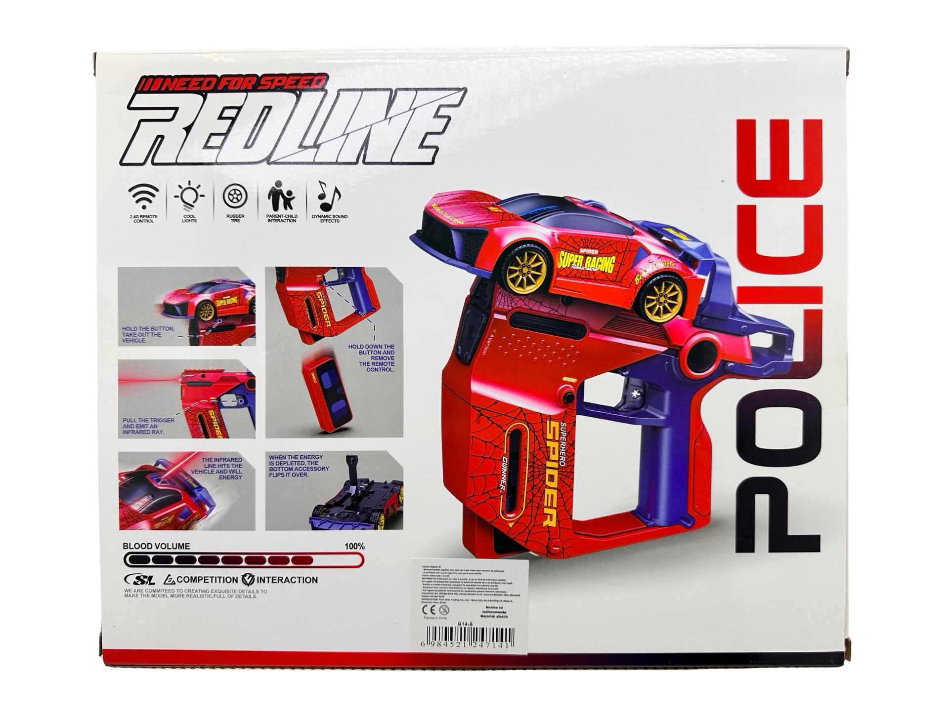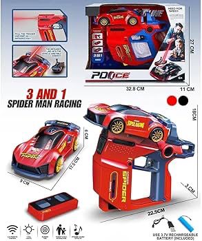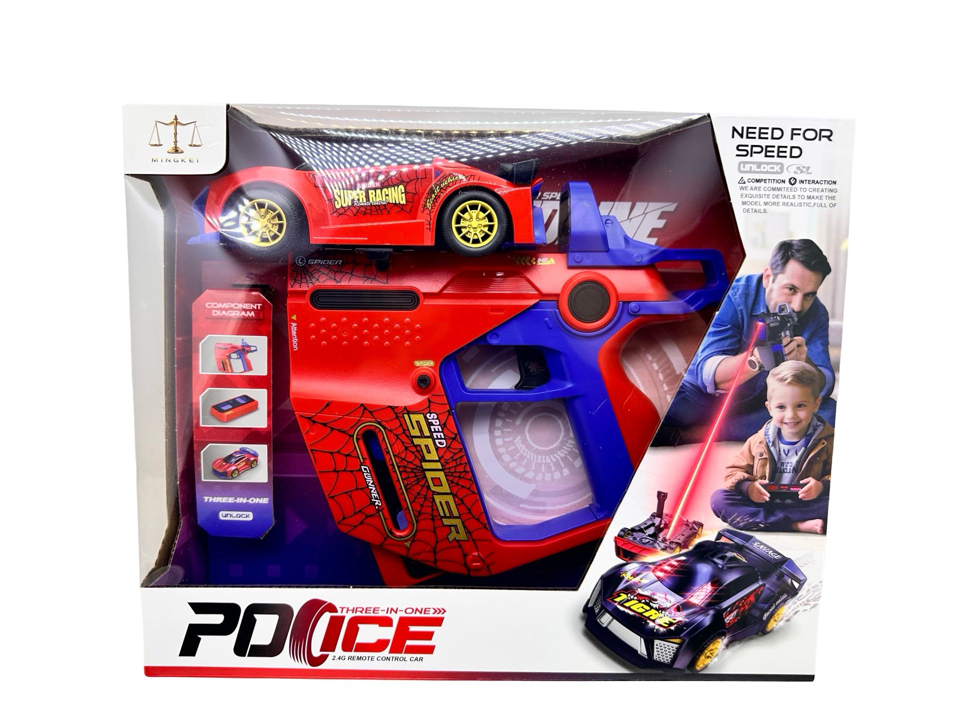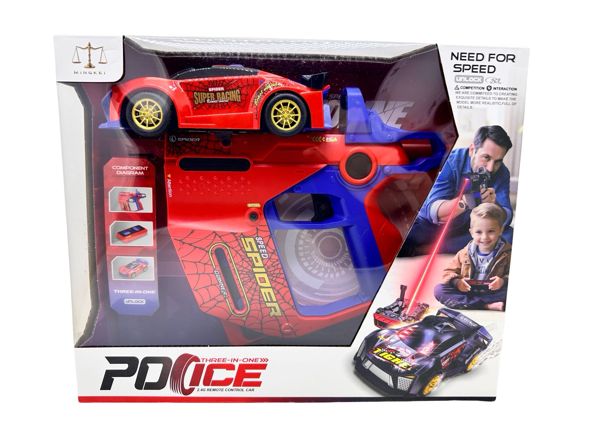 Descopera un concept inovator de joaca cu masina telecomandata tip pistol 3 in 1 Spider Racing. Acest model unic combina designul de masina sport cu un controller in forma de pistol, oferind o experienta interactiva si captivanta pentru copii.