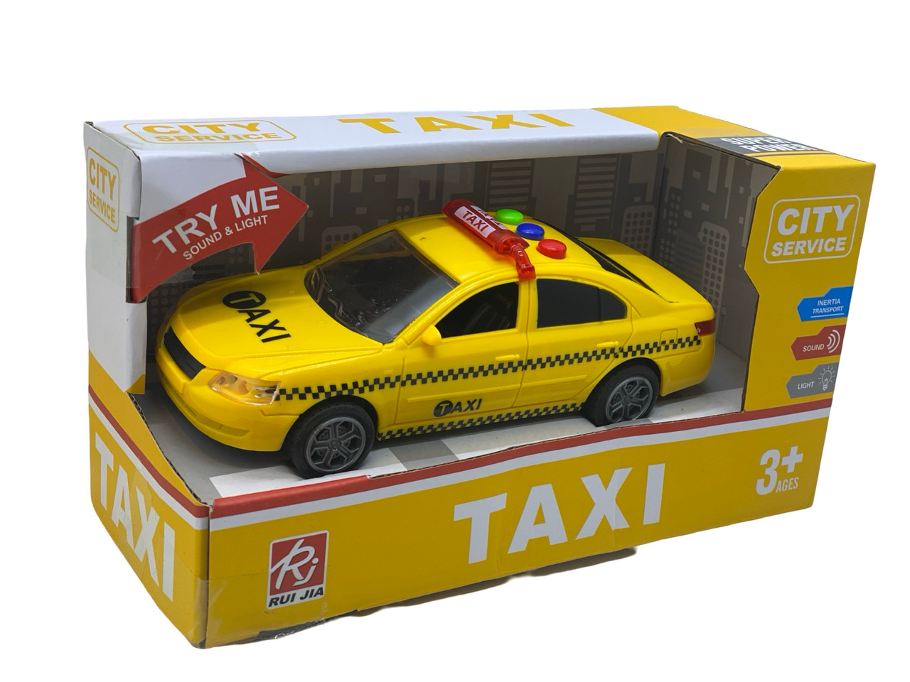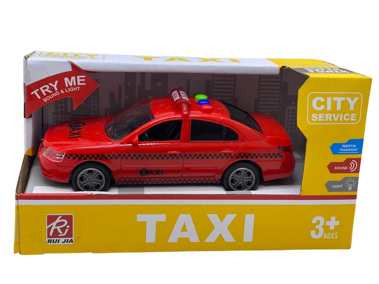 Masina taxi cu efecte de sunete si lumini. Dimensiune 15 cm. Material plastic de calitate buna. Este recomandat copiilor peste 3 ani.