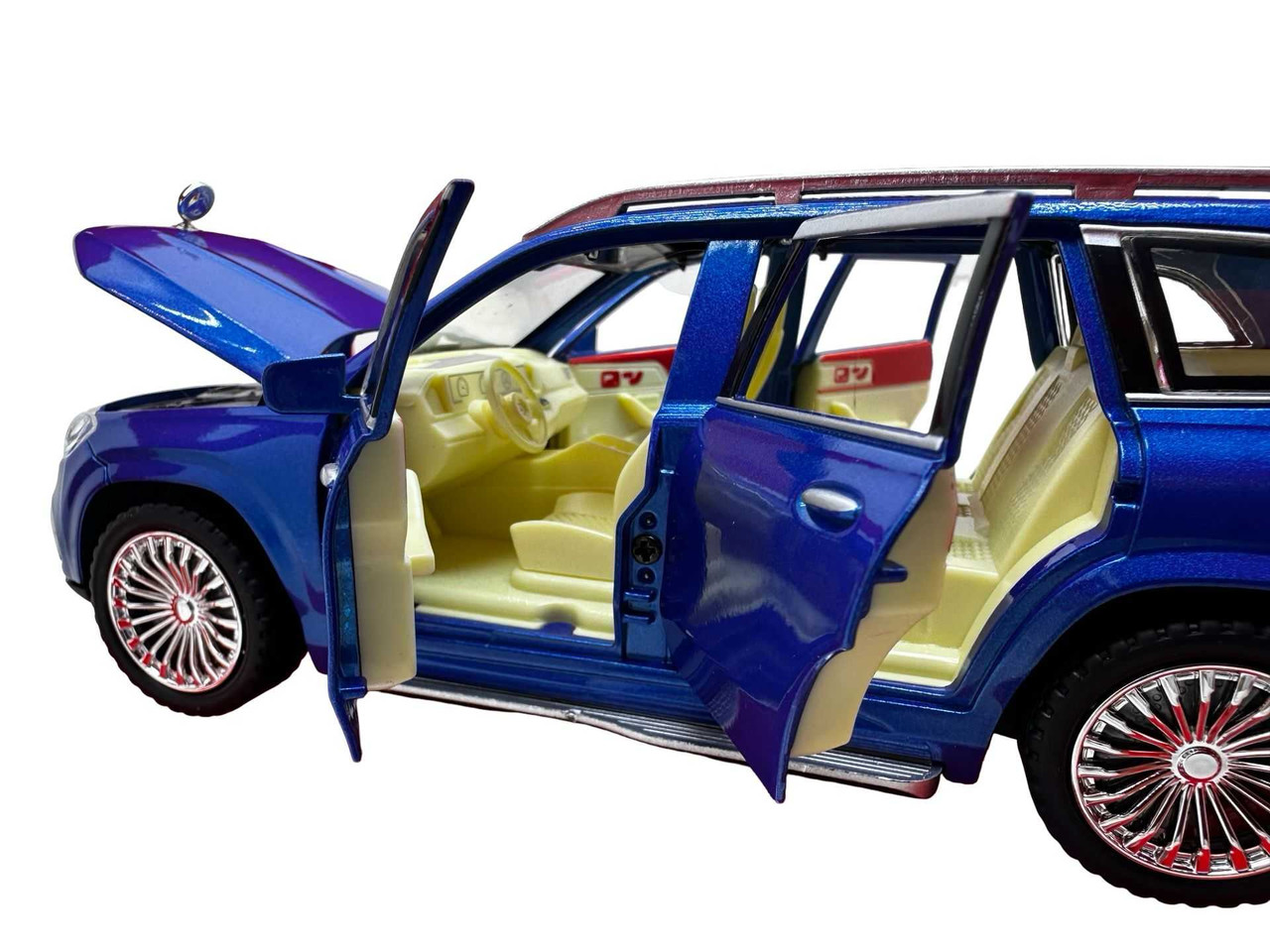 Masinuta metalica Mercedes Maybach GLS albastru 1:24 cu lumini si sunete, deschide usile