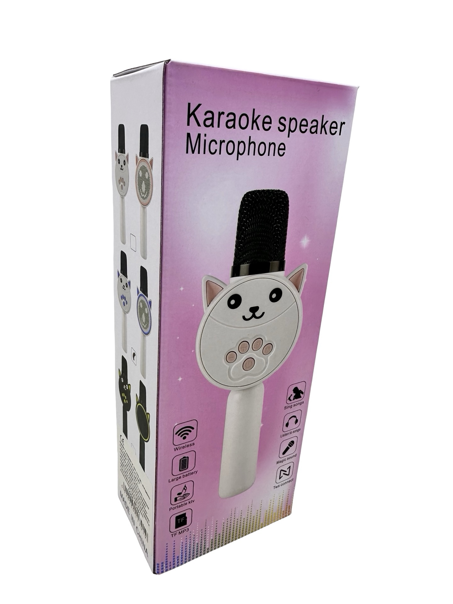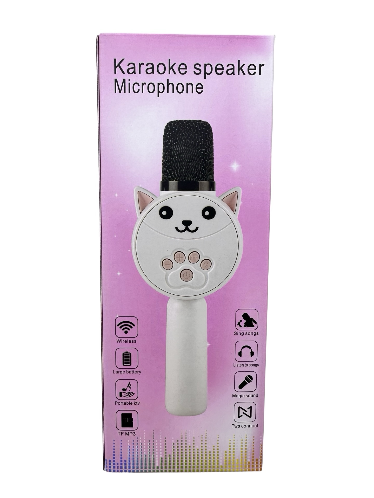 Microfon karaoke copii model pisica wireless Bluetooth cu difuzor lumini si efecte vocale