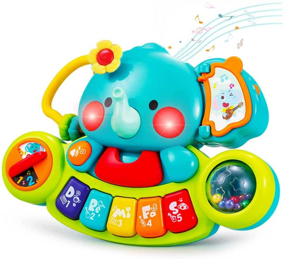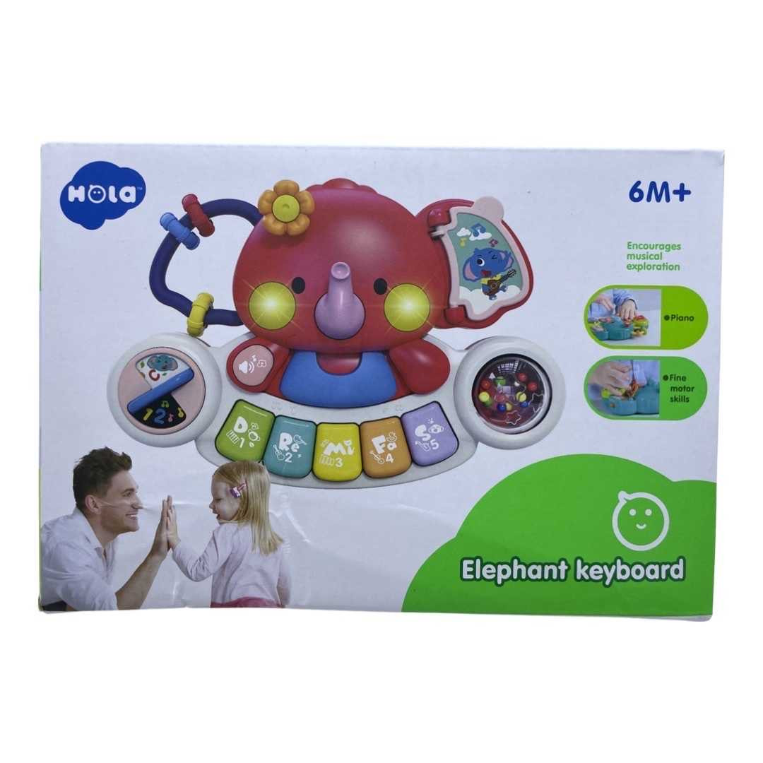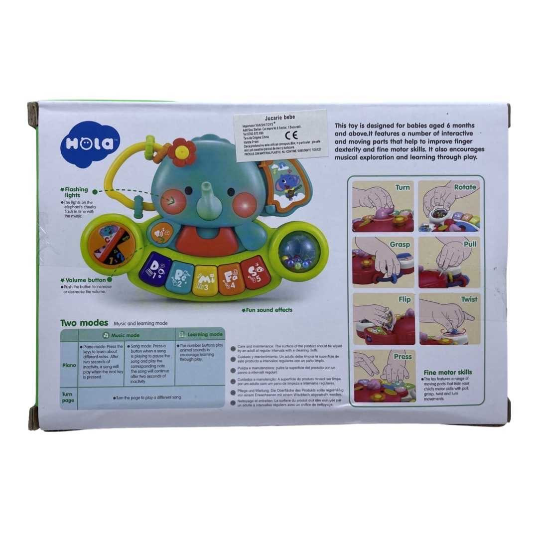 Orga muzicala Elefant Hola. Aceasta jucarie ii va incanta pe cei mici respectiv le va capta atentia datorita functiilor sale: sunete si lumini. Ajuta la dezvoltarea abilitatilor motorii si stimuleaza vederea si auzul. Necesita 3 baterii AAA. Dimensiune 20×13,5 cm. Este recomandat copiilor peste 6 luni.