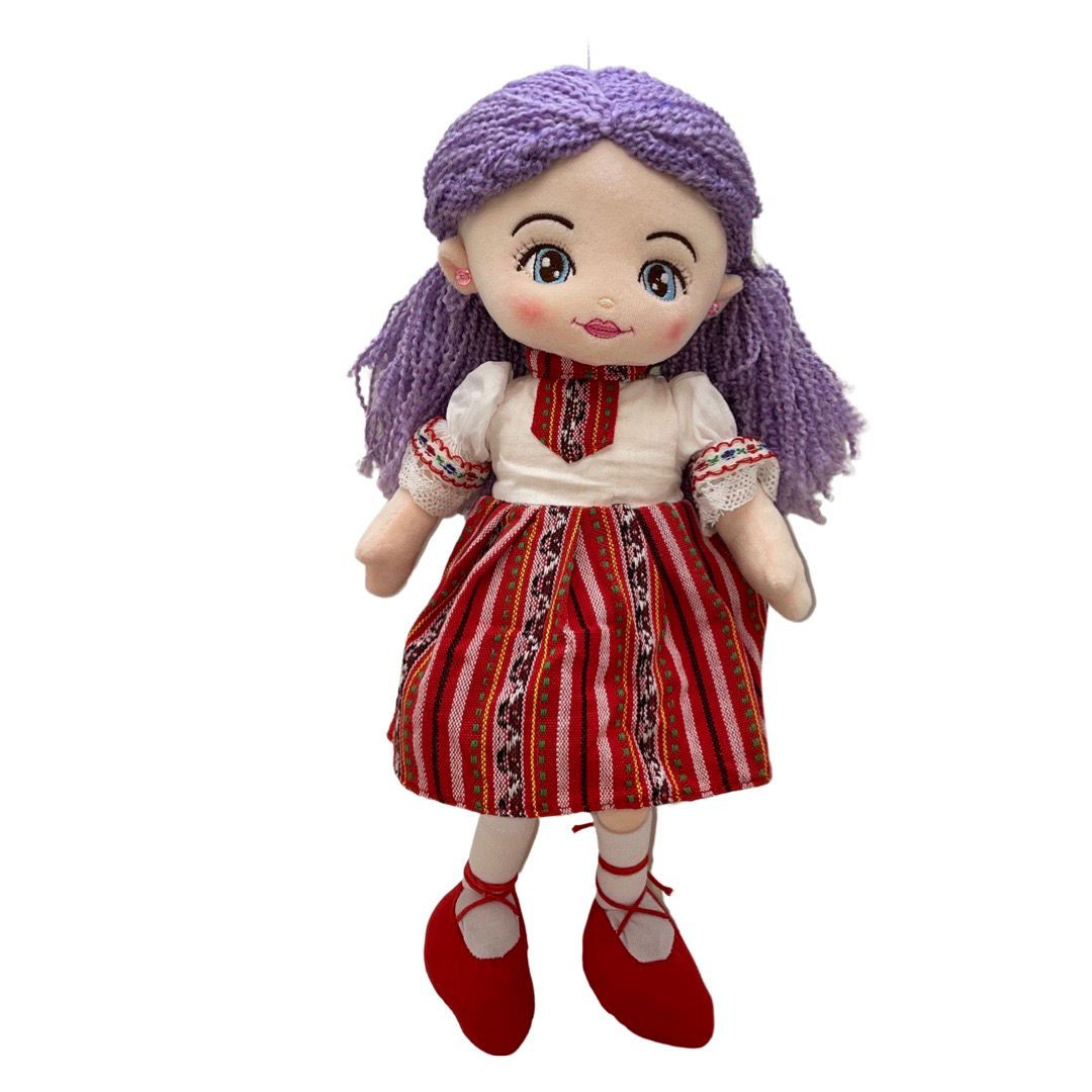 Papusa in costum national Cristina. Are inaltimea de 40 cm. In piept are un aparat care atunci cand este apasat canta o hora romaneasca. Se curata prin spalare. Recomandata copiilor peste 3 ani. Functioneaza cu baterii AG 13 care sunt incluse.