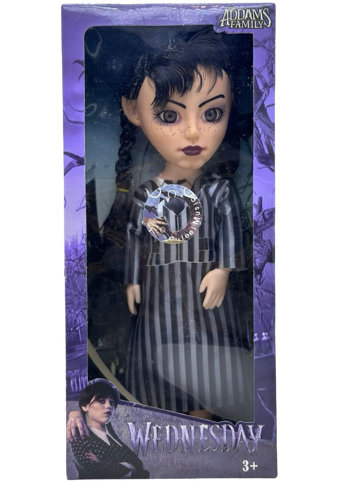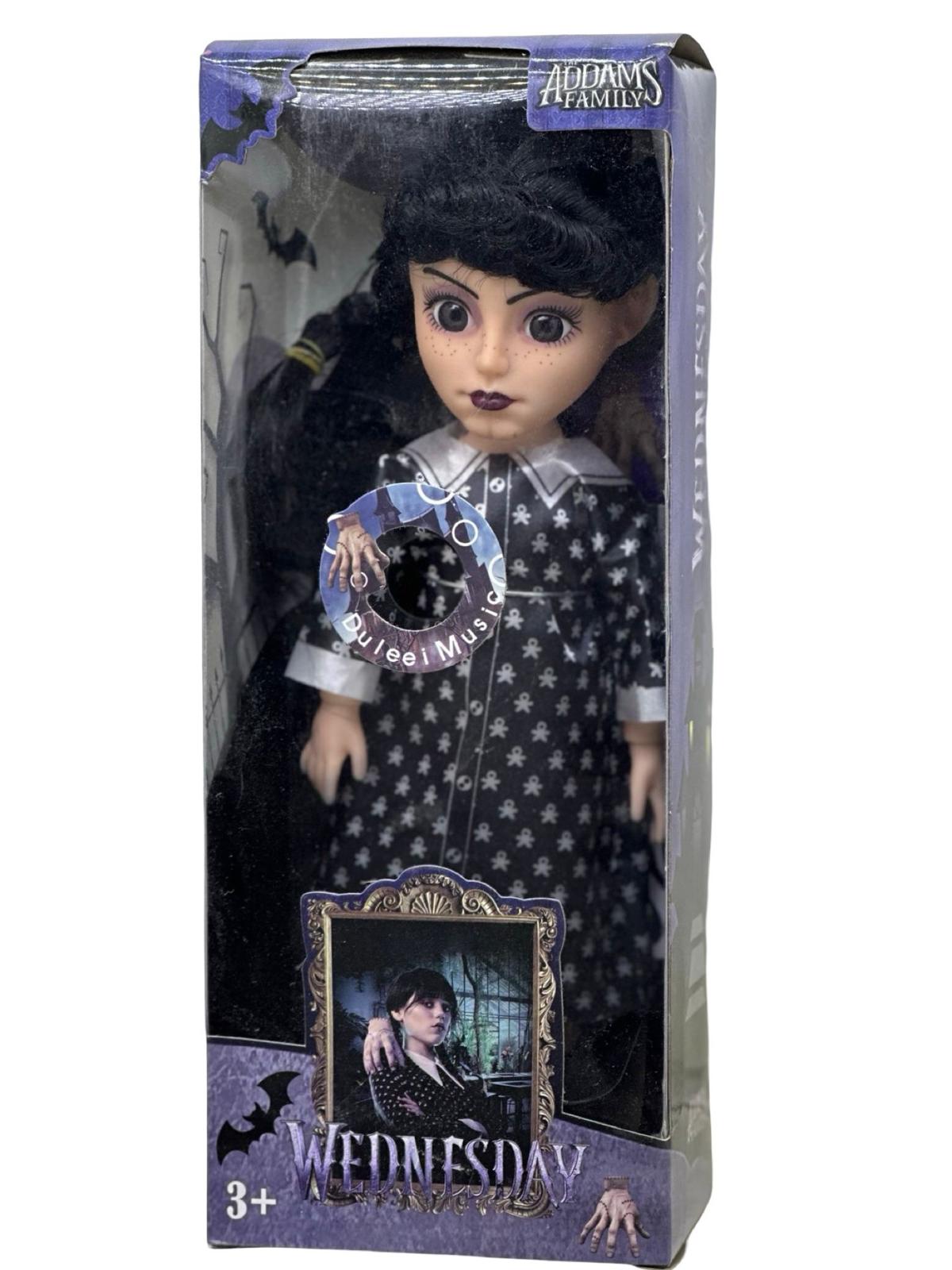 Papusa Wednesday Addams Family muzicala cu rochital 27 cm