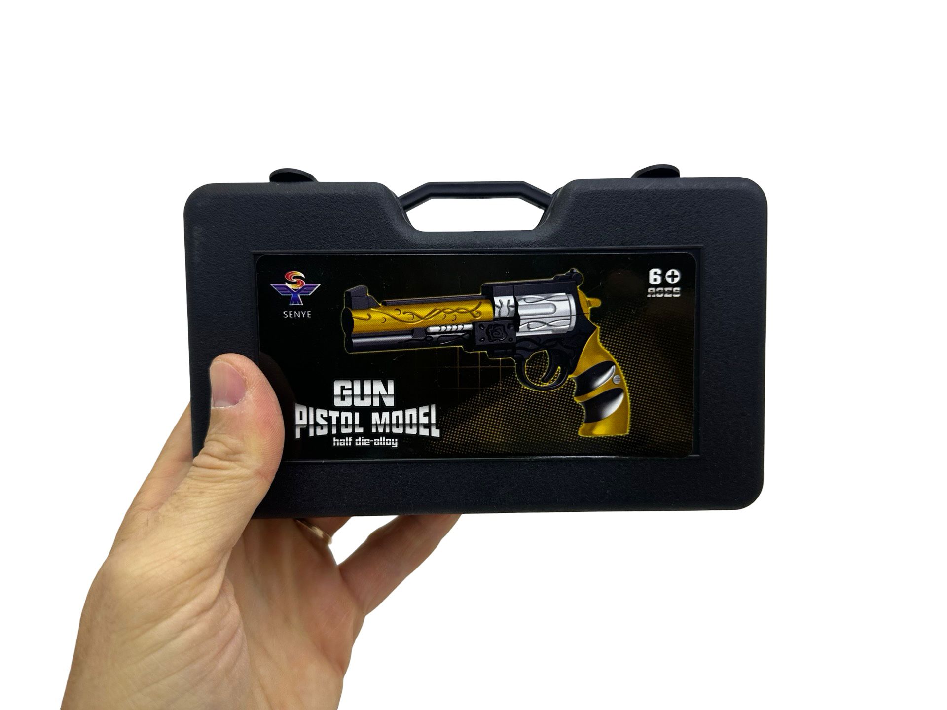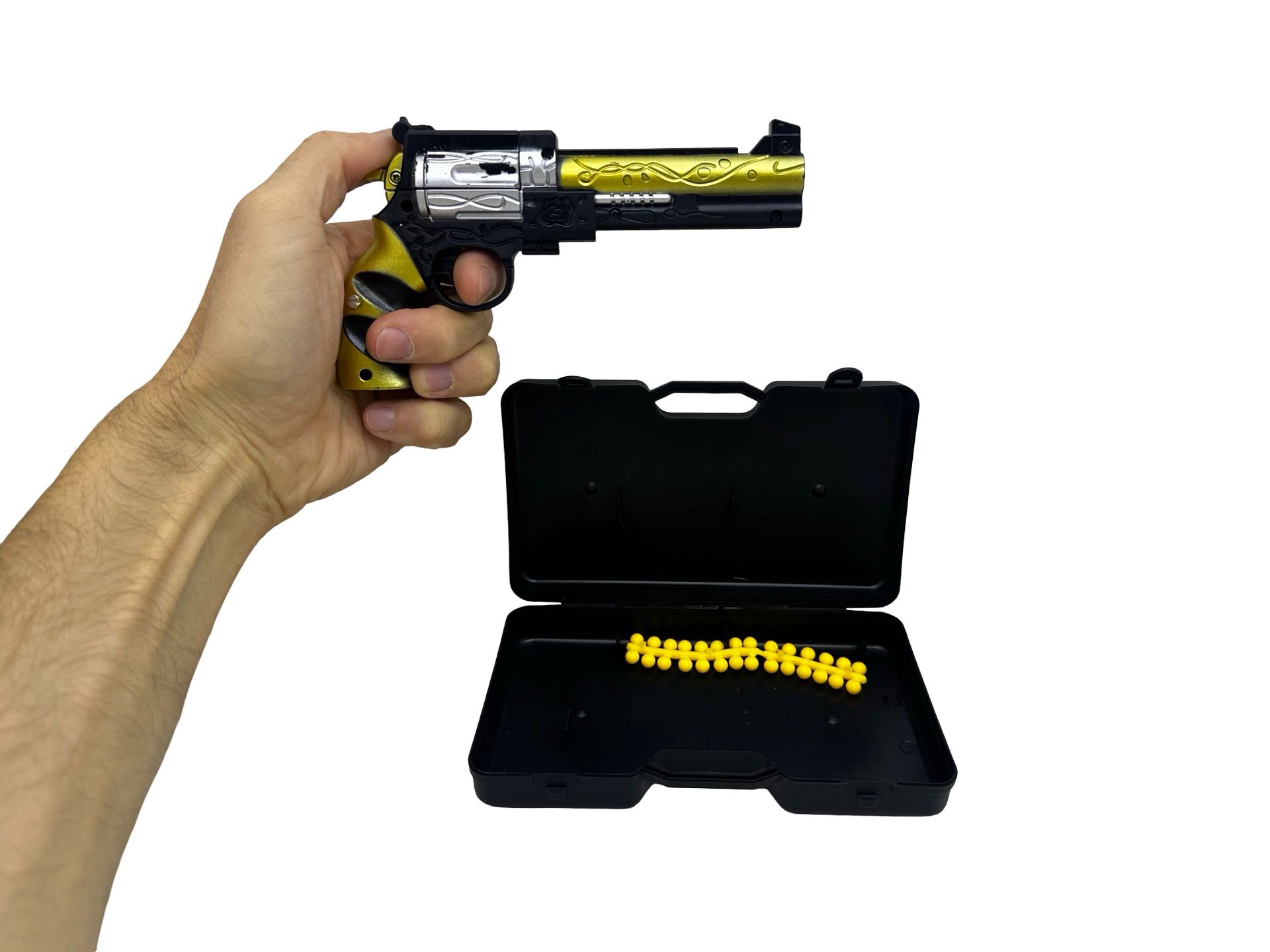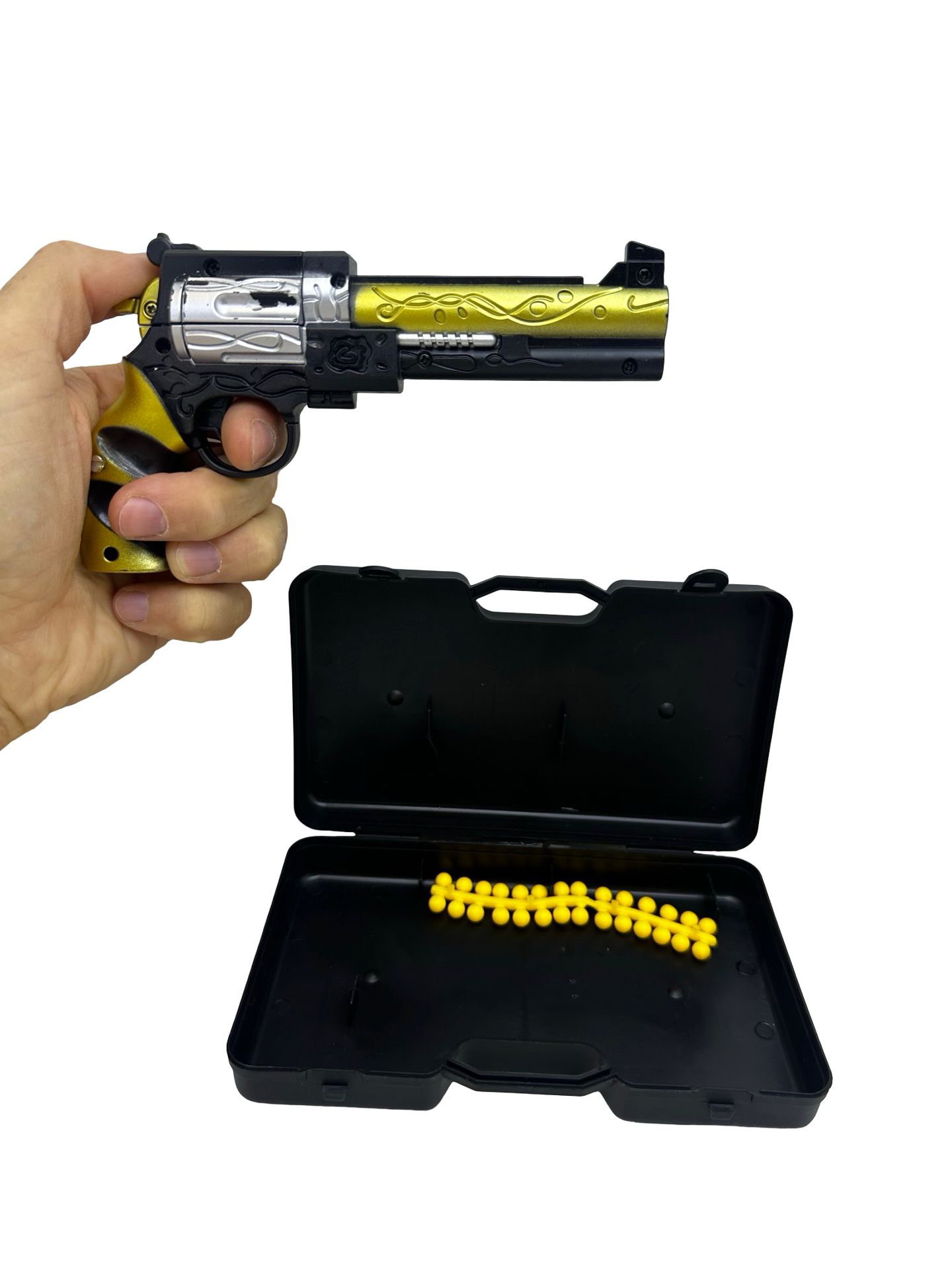 Pistol jucarie metalic Die-Cast cu bile si cutie de transport