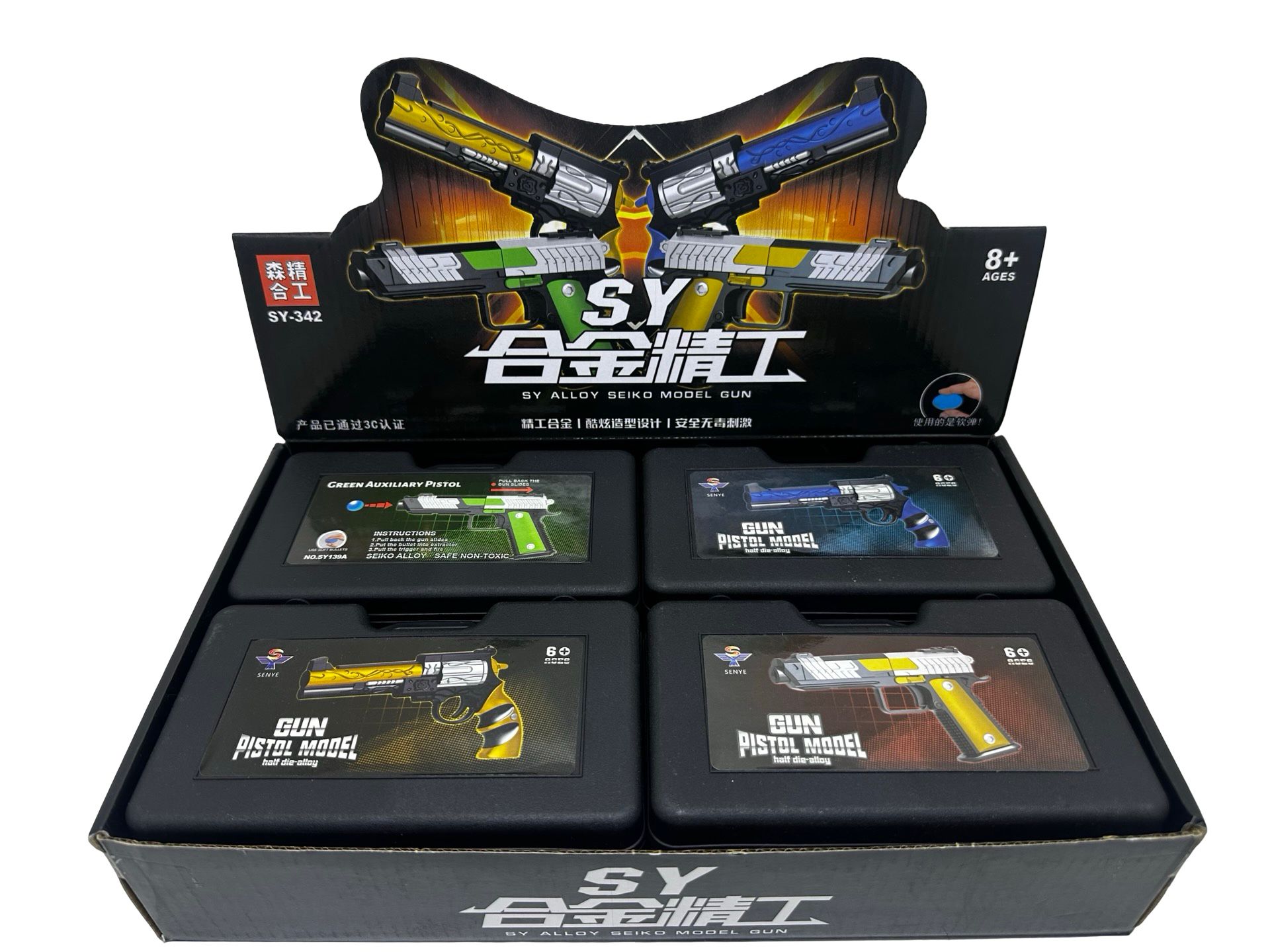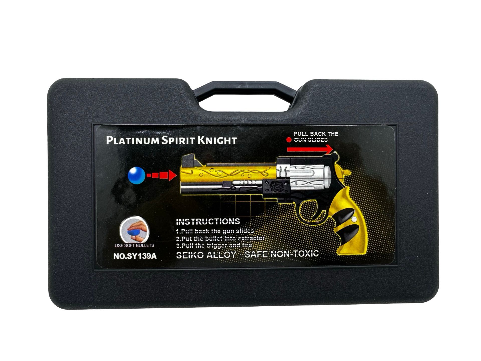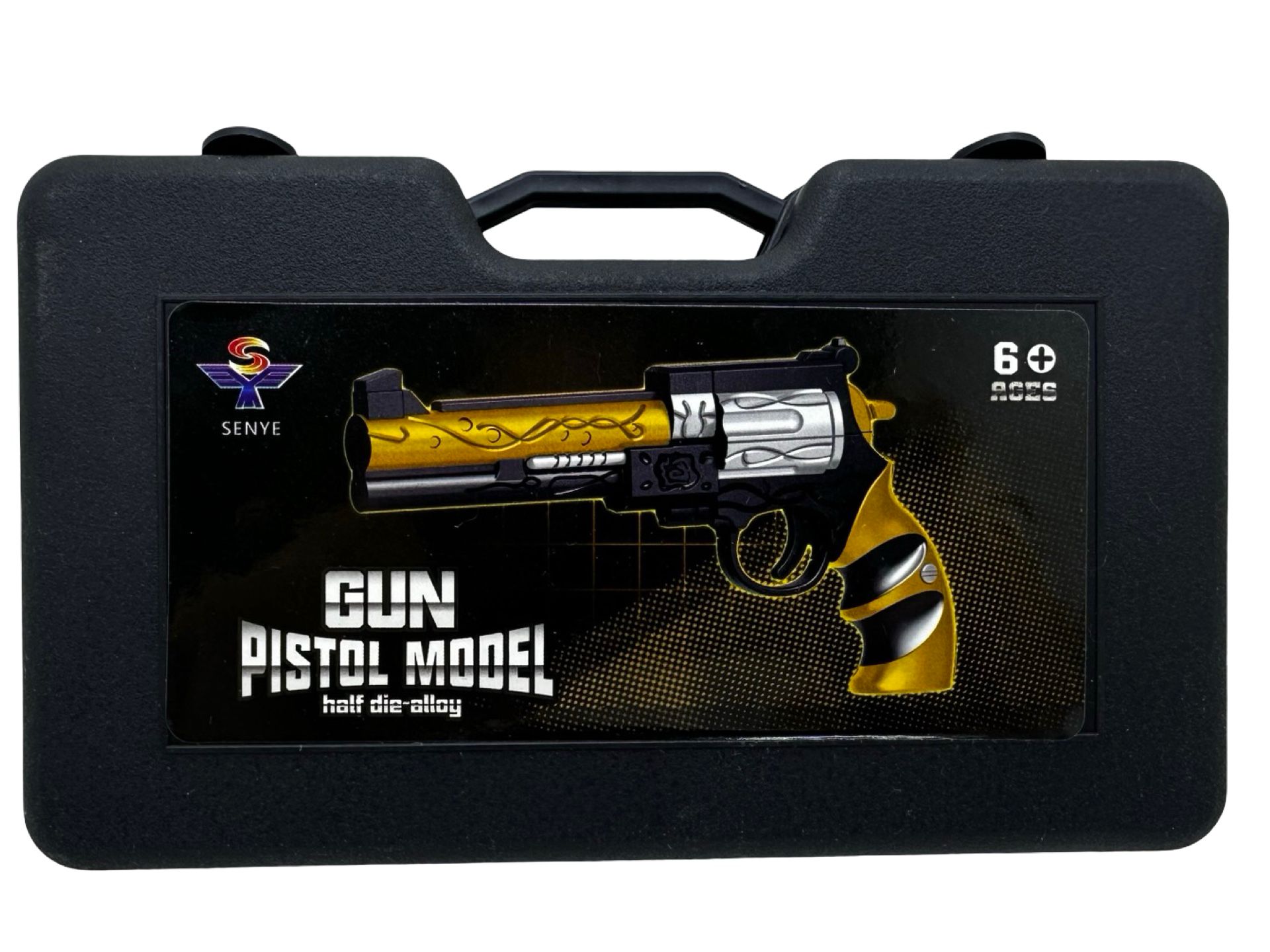 Pistol jucarie metalic Die-Cast cu bile si cutie de transport
