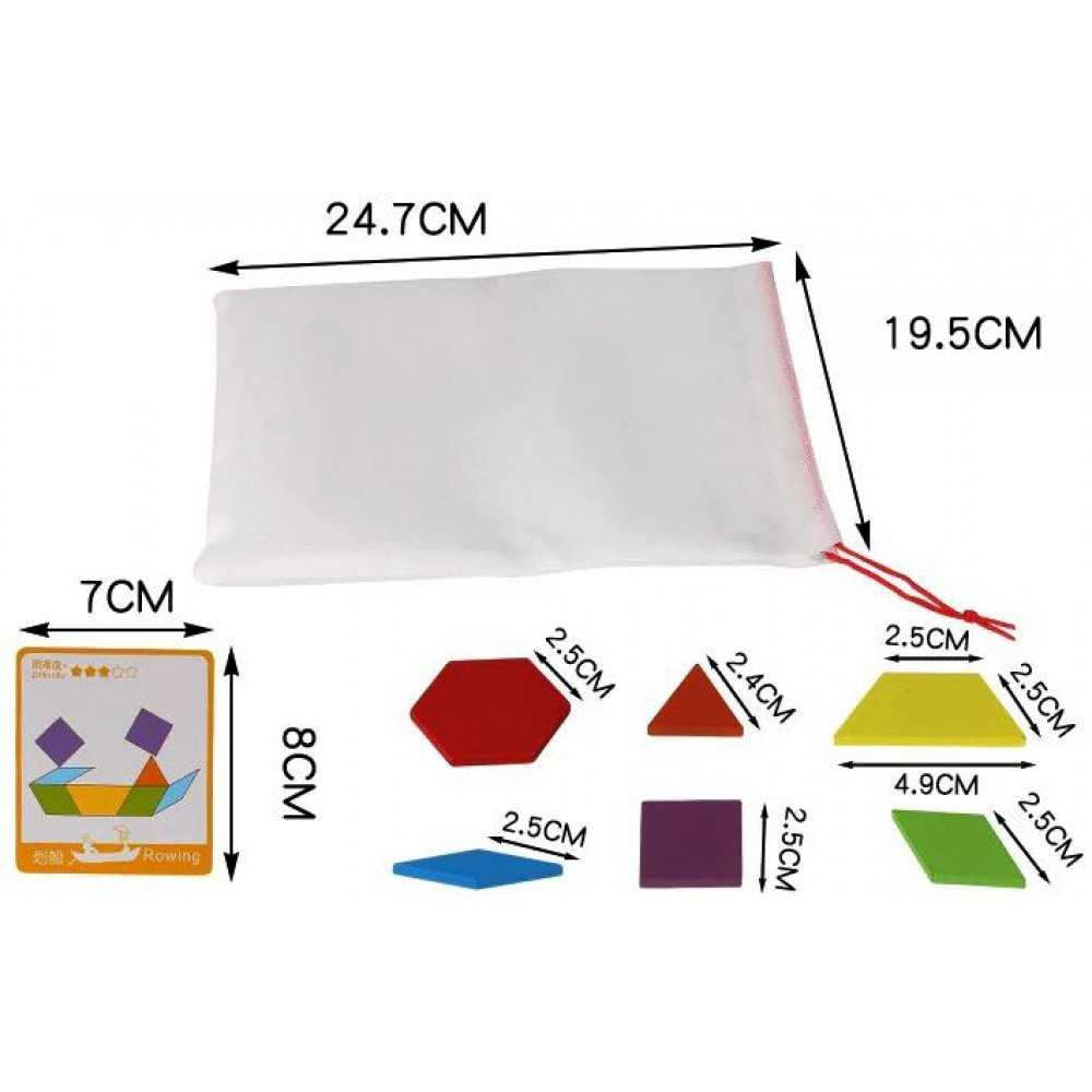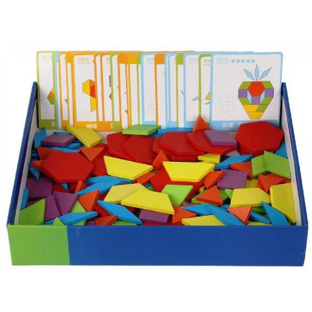 Puzzle Tangram din lemn cu 130 piese, dar cu un număr extraordinar de modalităti de a le asambla. Singura limitare este imaginatia ta. Varsta recomandata: 3 ani+