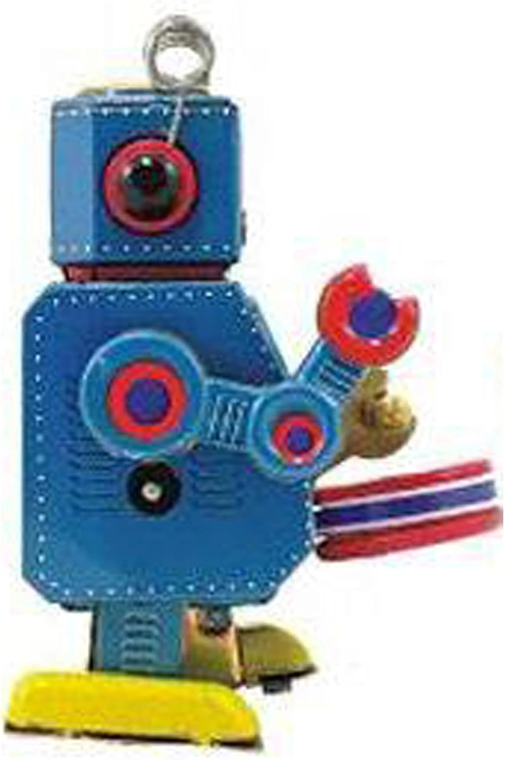 Acest robotel simpatic este o jucarie de colectie clasica realizata din tabla litografiata inspirata de designul futurist al anilor 50. Este o piesa plina de caracter care imbina nostalgia cu mecanica ingenioasa de tip clockwork.