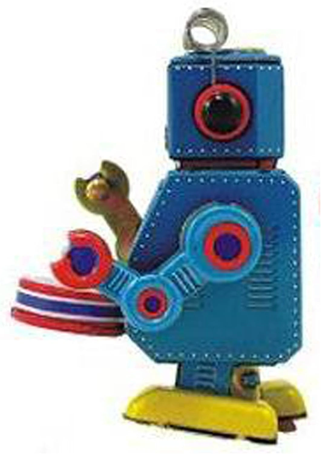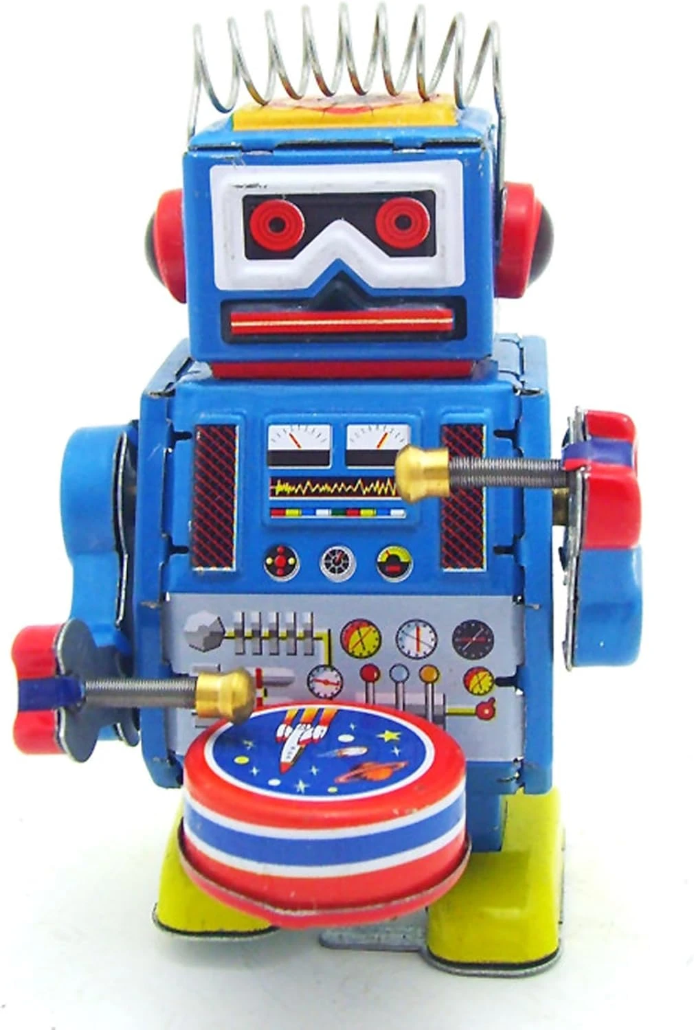 Mecanism: Functioneaza prin intoarcere cu cheita. Odata armat robotelul incepe sa bata la toba intr-un ritm mecanic repetitiv oferind un spectacol vizual si sonor autentic.