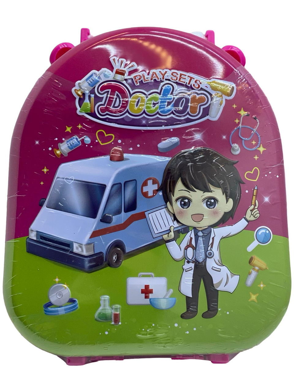 Trusa de doctor valiza troler roz. Aceasta trusa de doctor copii ofera ore intregi de distractie si invatare. Copiii dezvolta si invata notiuni de baza despre echipamentul medical si despre medicina. Accesoriilor medicale pot fi depozitate in valiza pentru doctori, astfel nu se pierde nicio jucarie. Setul include foarfeca, seringa, microscop, ciocanel etc. Dimensiune 49x33x22cm. Este recomandat copiilor peste 3 ani.