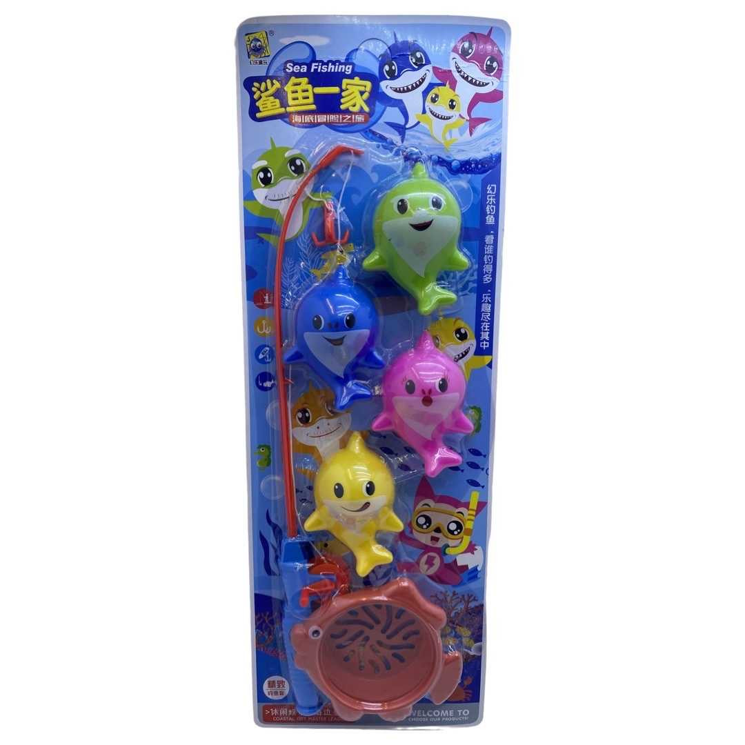 Set undita de jucarie cu Baby Shark. Pe langa undita de 40 cm se mai gasesc 4 pestisori cu lungimea de 7 cm si o sita in care pot fi pusi pestisorii dupa ce sunt prinsi. Recomandat copiilor cu varsta peste 3 ani.