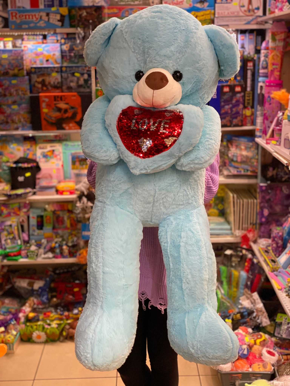 Urs albastru bleu inima cu paiete 1m