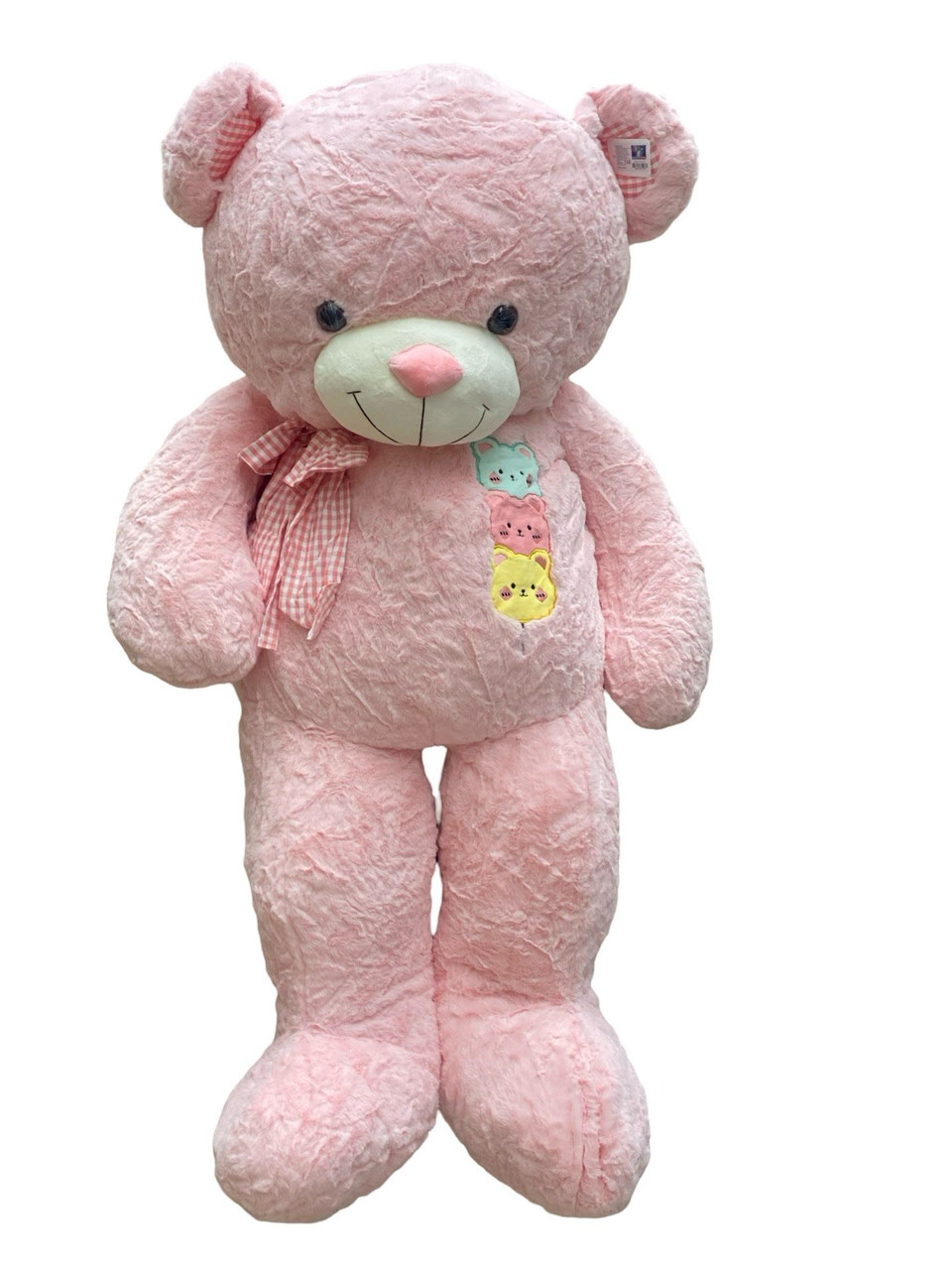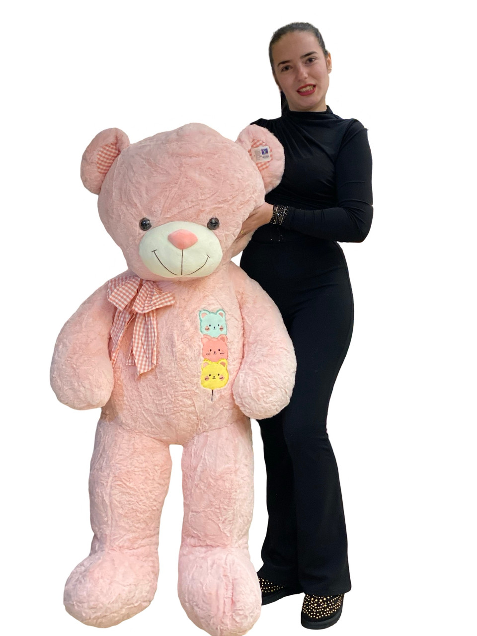 Adauga un strop de magie cu acest urs de plus roz de 1,4 metri, decorat cu o fundita gingasa si un detaliu adorabil cu 3 pisicute pe piept! Perfect pentru a aduce bucurie si tandrete in orice moment special. ??