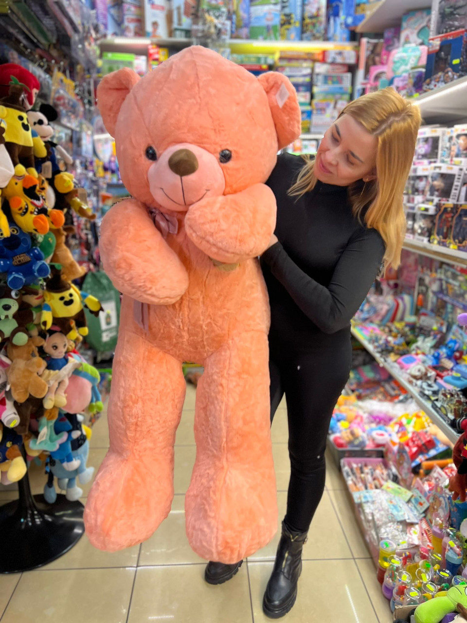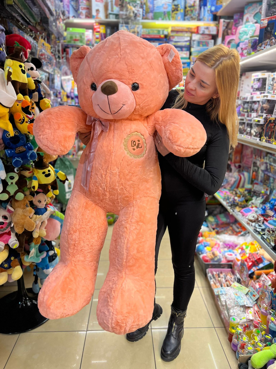 Descopera gingasia acestui urs de plus somon de 1,4 metri, un companion pufos si elegant, ideal pentru a aduce zambete si caldura in orice moment special! Decorat cu o fundita rafinata si un logo „LOVE”, acest urs este simbolul perfect al afectiunii. ??