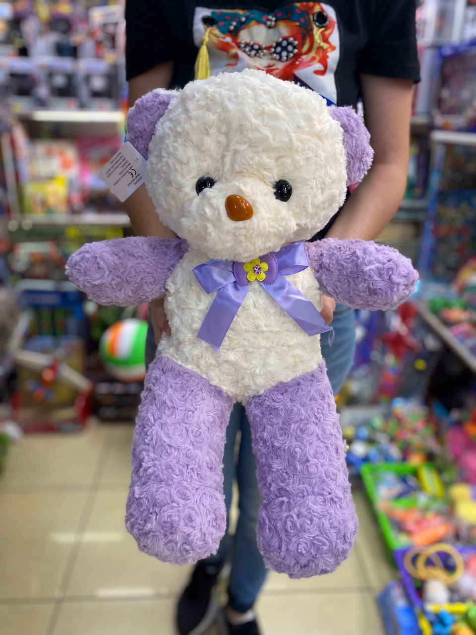 Urs in doua culori alb mov 45 cm