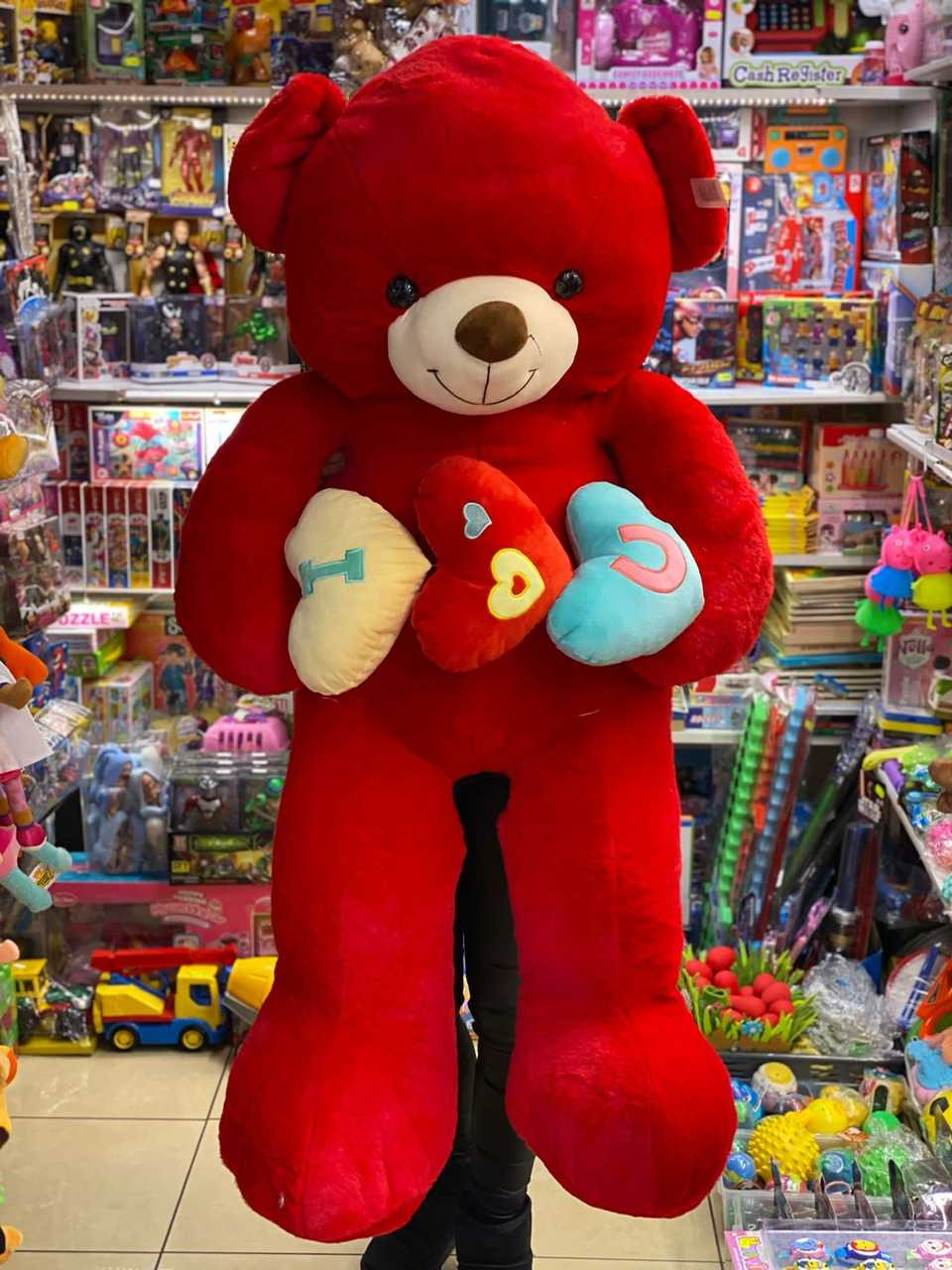 Urs mare de plus cocolino rosu cu trei inimi 1.3m
