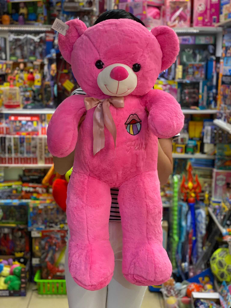 Ursulet pufosde plus roz ciclam buze 80cm. din plus catifelat si moale la atingere. Este umplut cu puf siliconat antialergic. Curatarea se realizeaza cu o carpa umeda sau prin spalare la masina dupa ce in prealabil se scoate umplutura din el. Nu contine materiale toxice.
