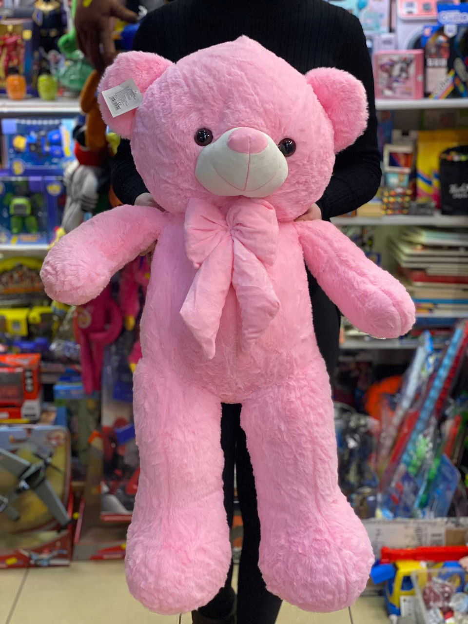 Urs roz cu papion din plus 80cm. Are inaltimea de 80 cm si este din plus catifelat si placut la atingere. Umplutura este puf siliconat antislergic. Se poate curata prin spalare sau stergere cu o carpa umeda.