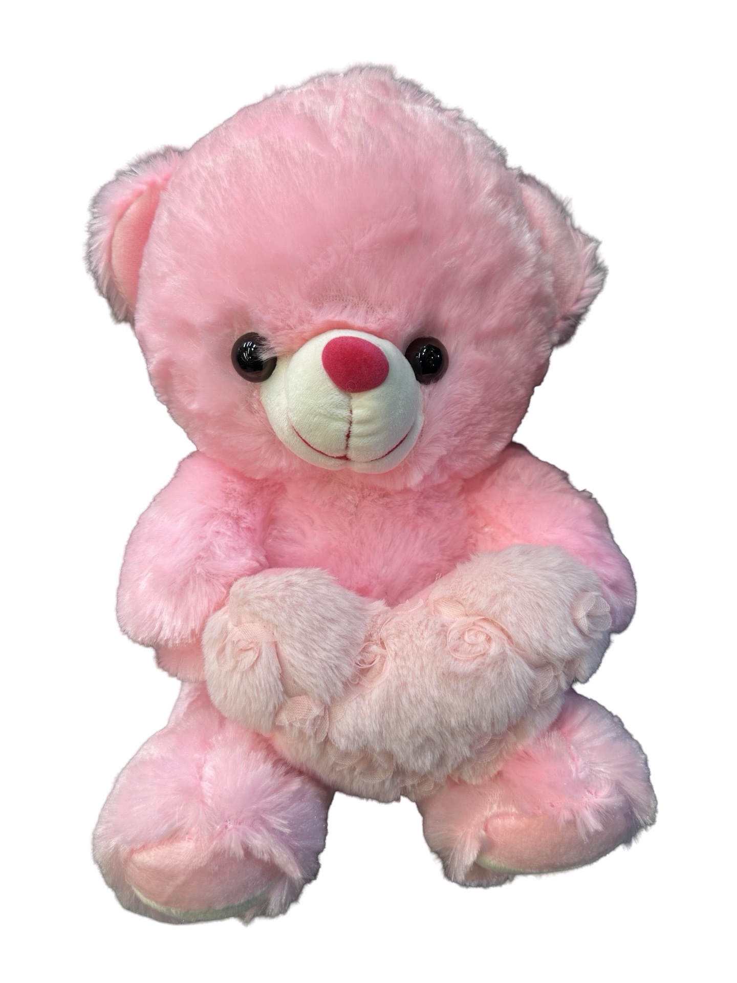 Urs roz de plus cu inima cu trandafiri